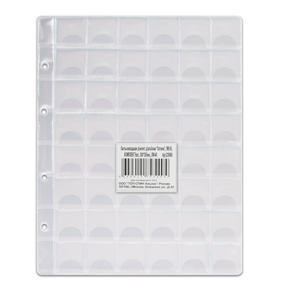 Листы-вкладыши для монет для альбома Оптима М9-05, комплект 5 шт., 200х250 мм, 48 карманов, Лм-48