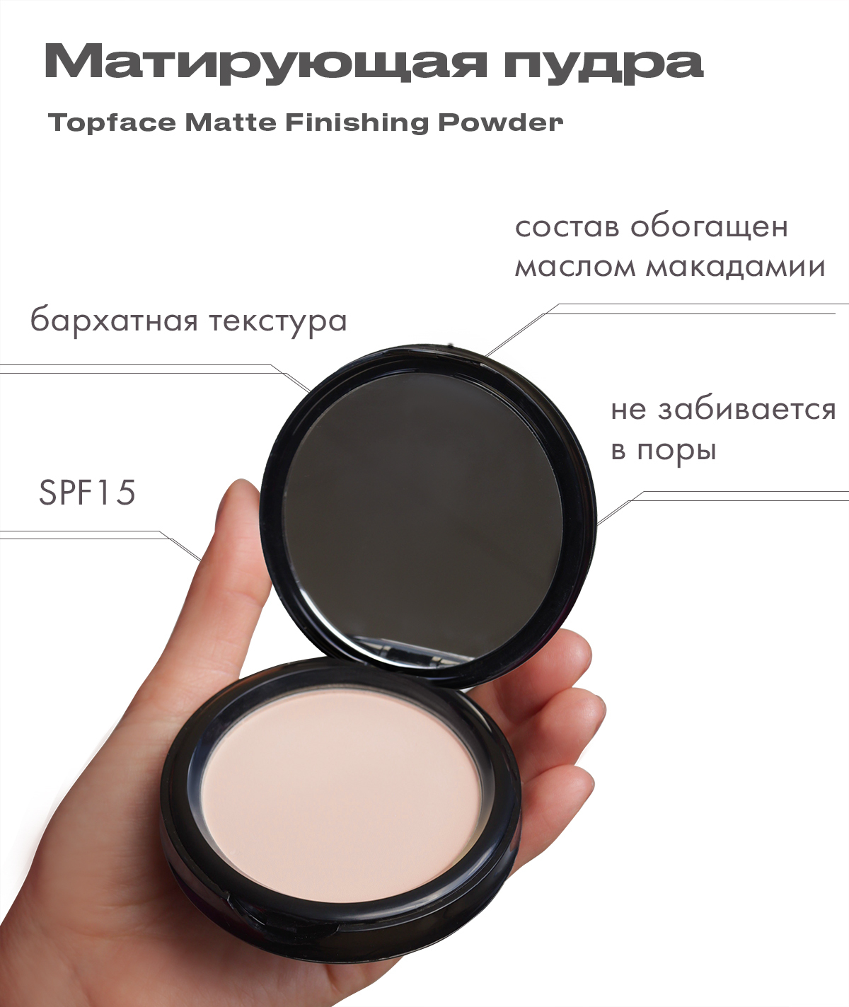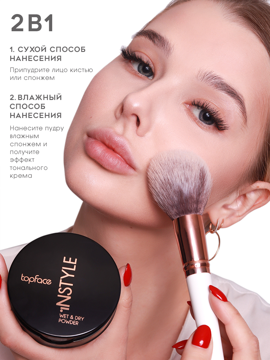 Пудра для лица Topface, сухая + крем пудра, 2 в 1 сухой и влажный способ, матирующая, тон 02