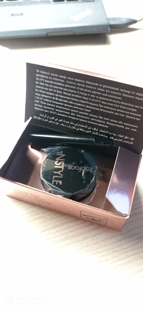Подводка для глаз гелевая водостойкая, черная, с кисточкой