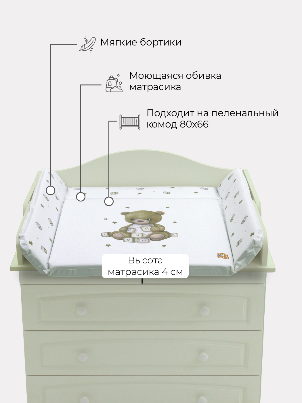 Матрасик для пеленания Топотушки Лучик непромокаемый 92х73х4 см