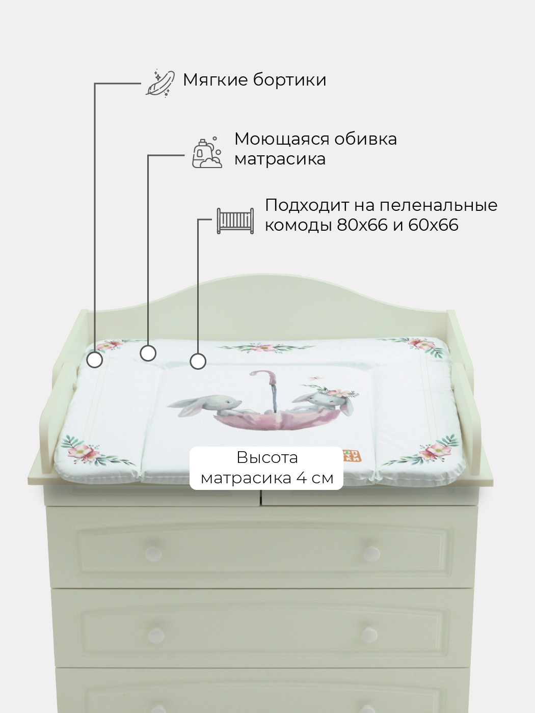 Матрасик для пеленания Топотушки Зайка-Акварель непромокаемый 80х71х4 см