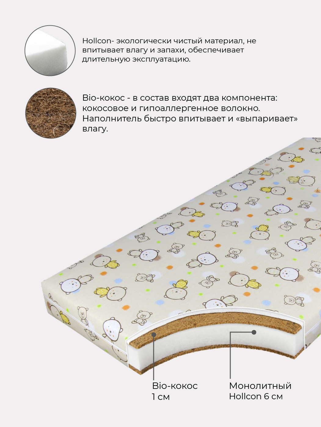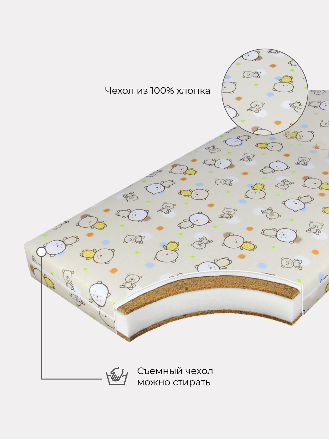 Матрас детский Топотушки в кроватку Юниор овальный поплин 125x75 (арт.31), Беспружинный, 65х125 см