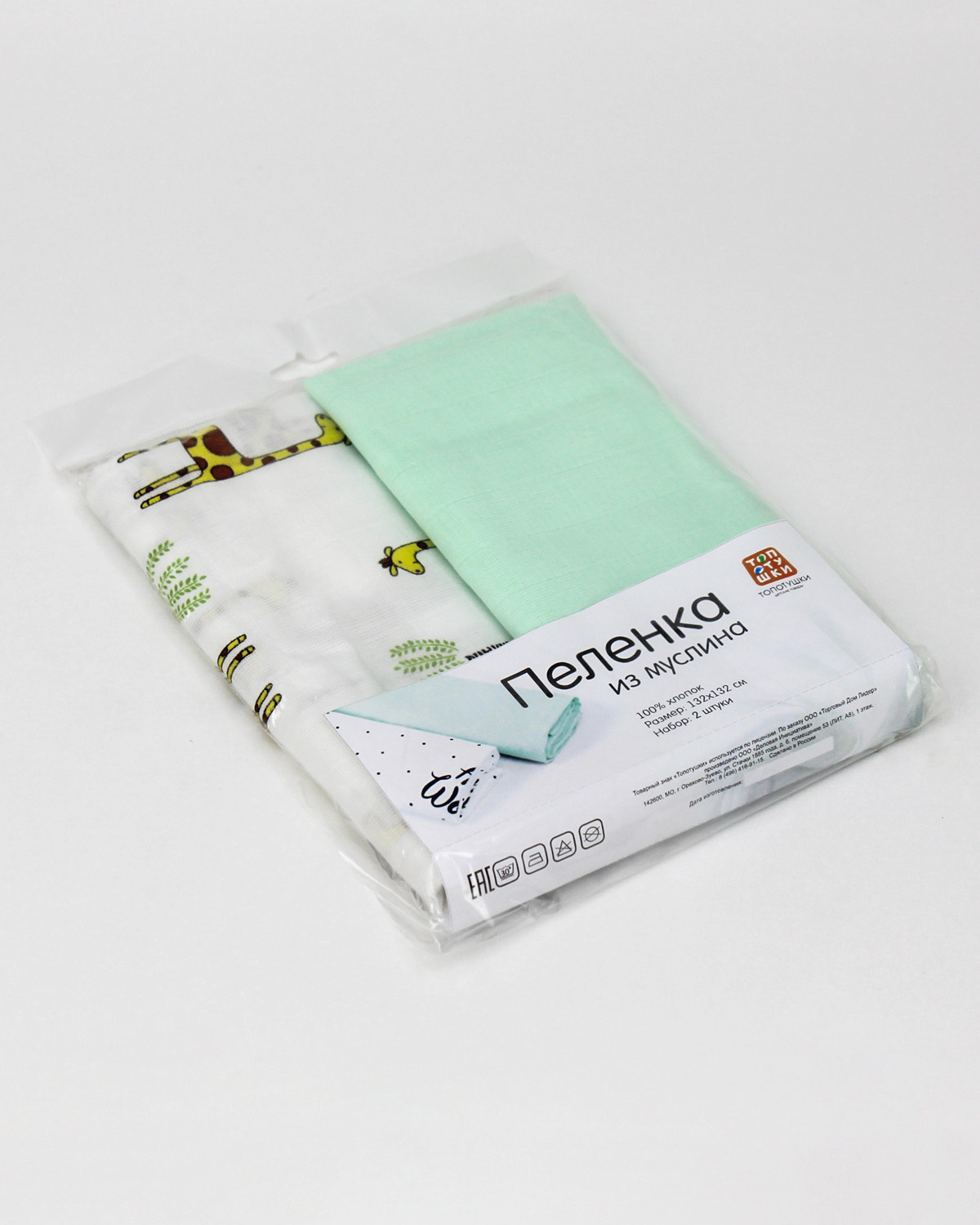 Пеленка текстильная Топотушки , Хлопок, Муслин, 2 шт