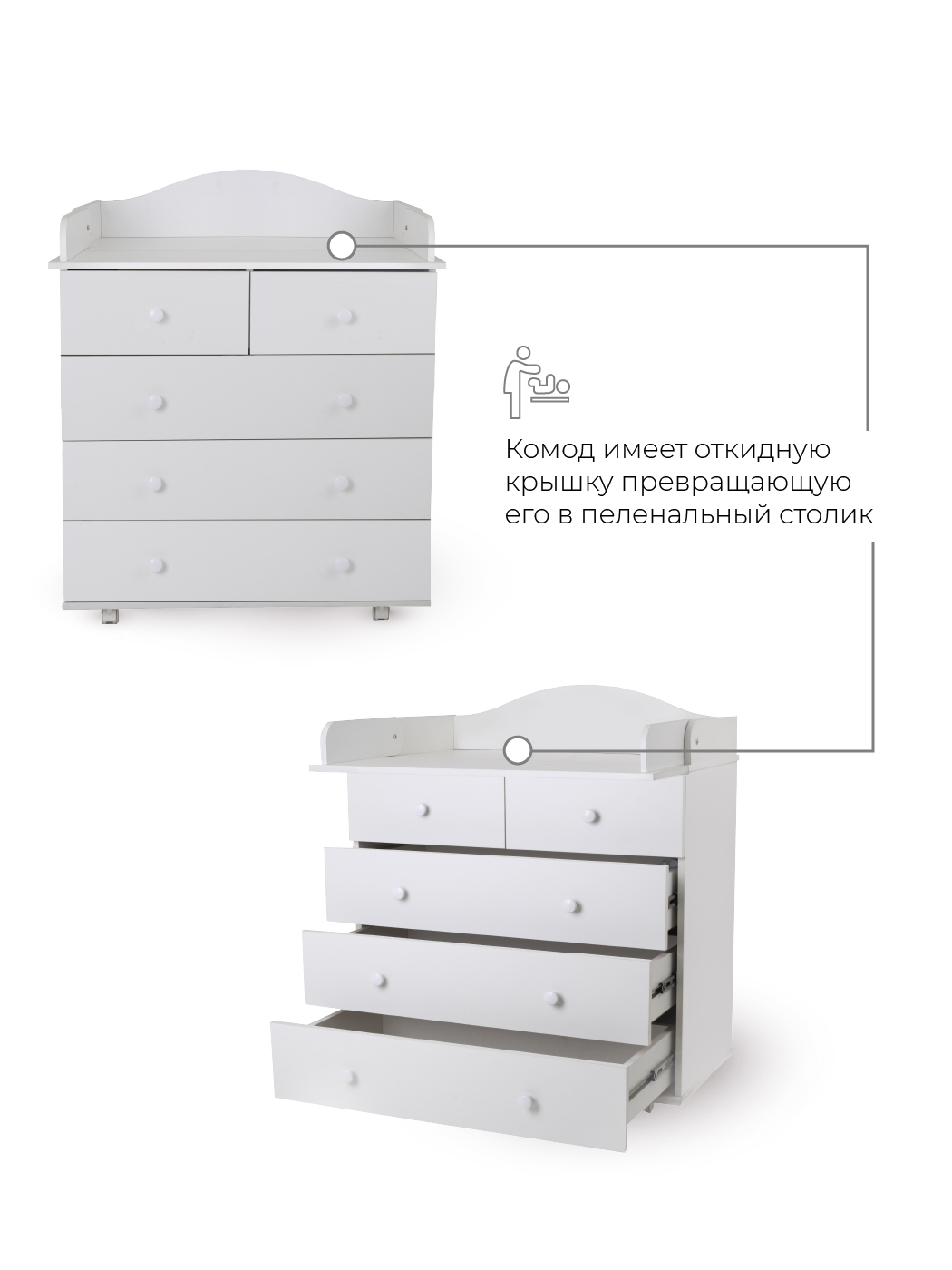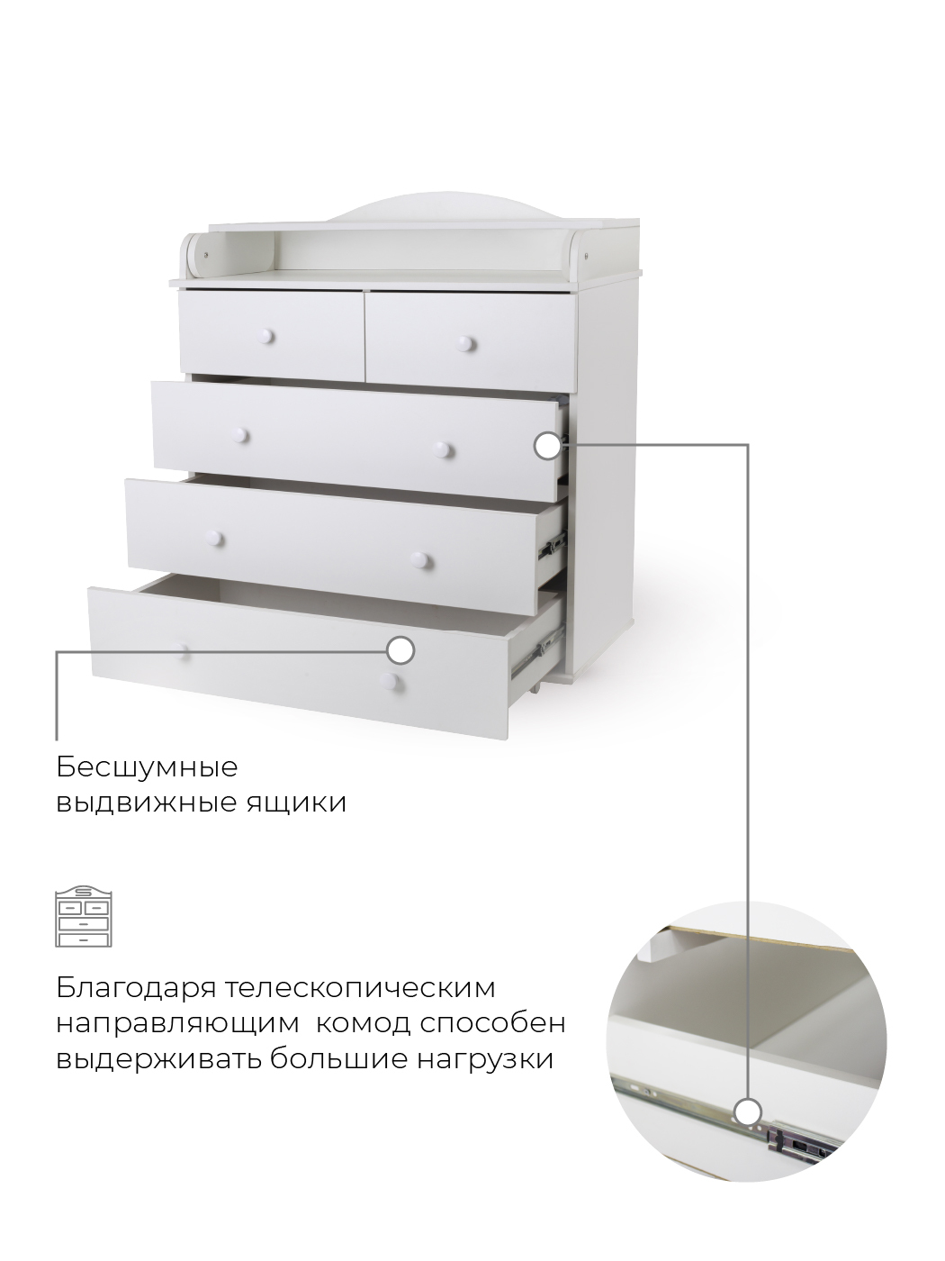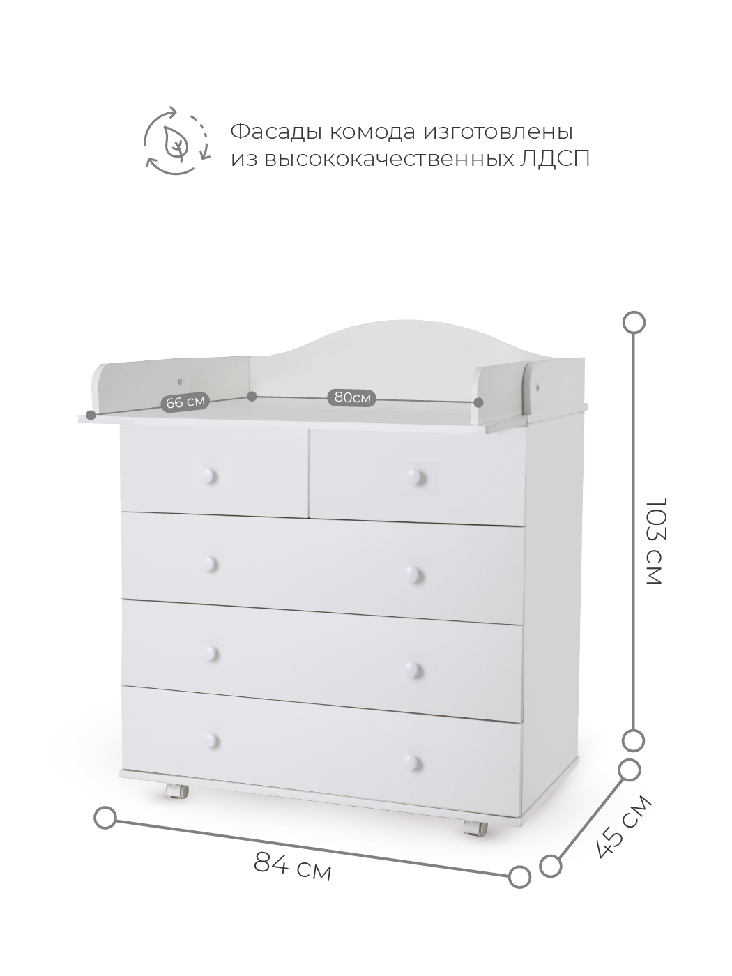 Комод пеленальный Топотушки Фортуна ЛДСП 800/5 белый (арт.62)