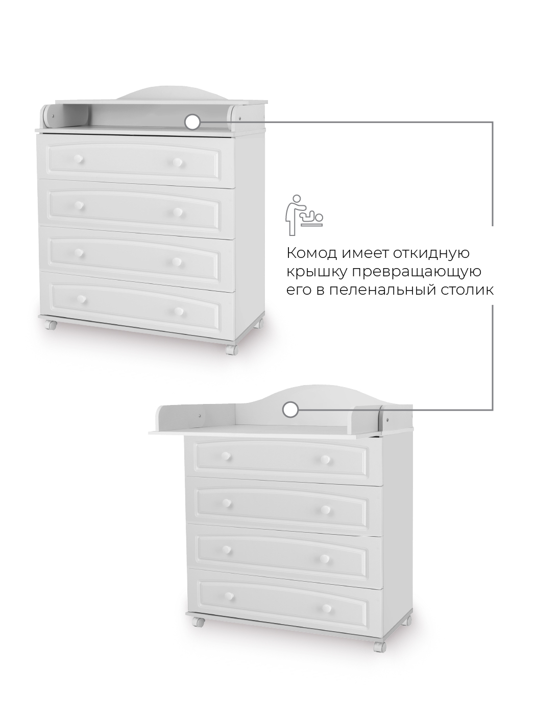 Комод пеленальный Топотушки Ричард МДФ 800/4 белый (арт.64)