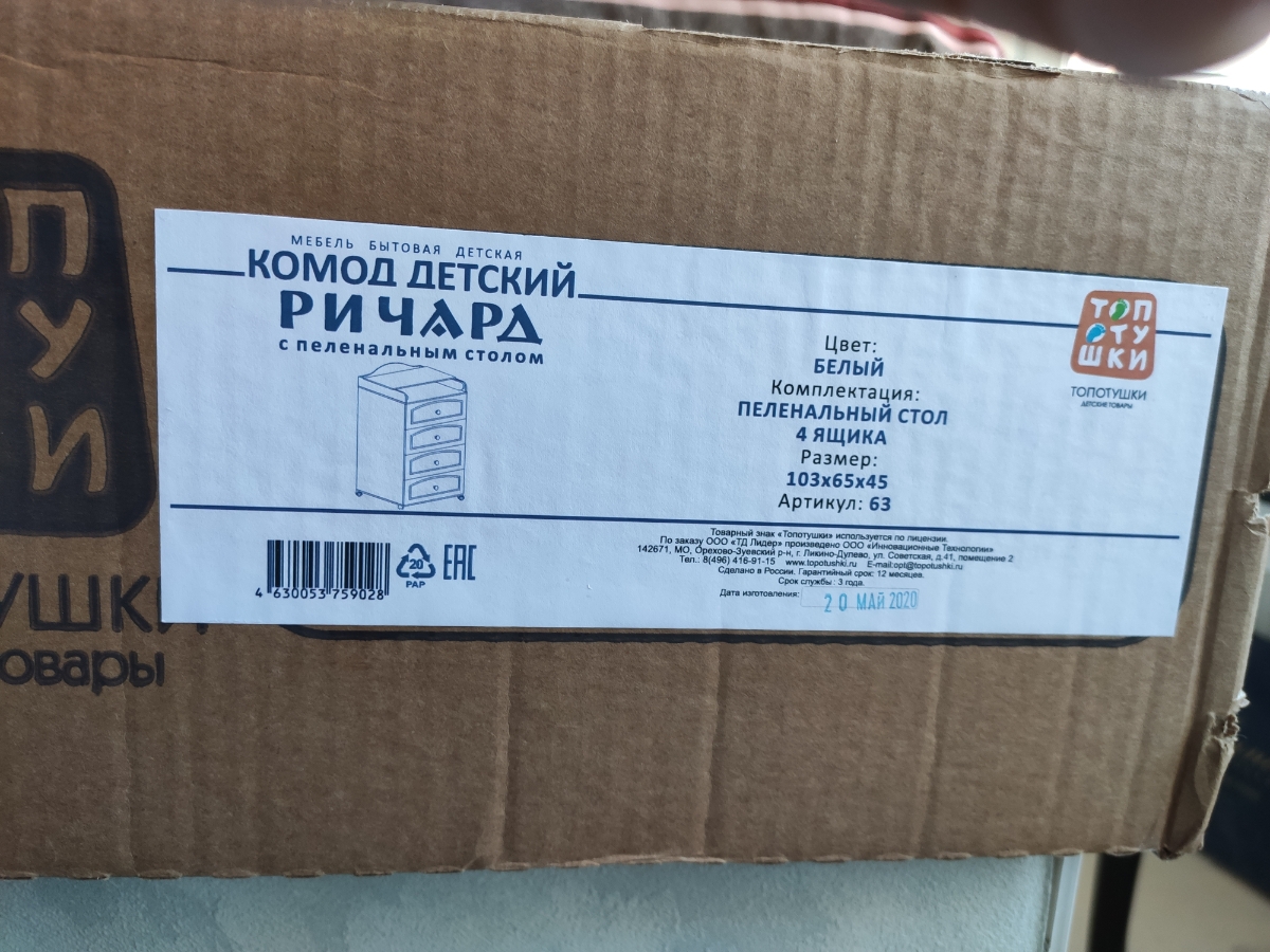 Комод пеленальный Топотушки Ричард МДФ 600/4 белый (арт.63)