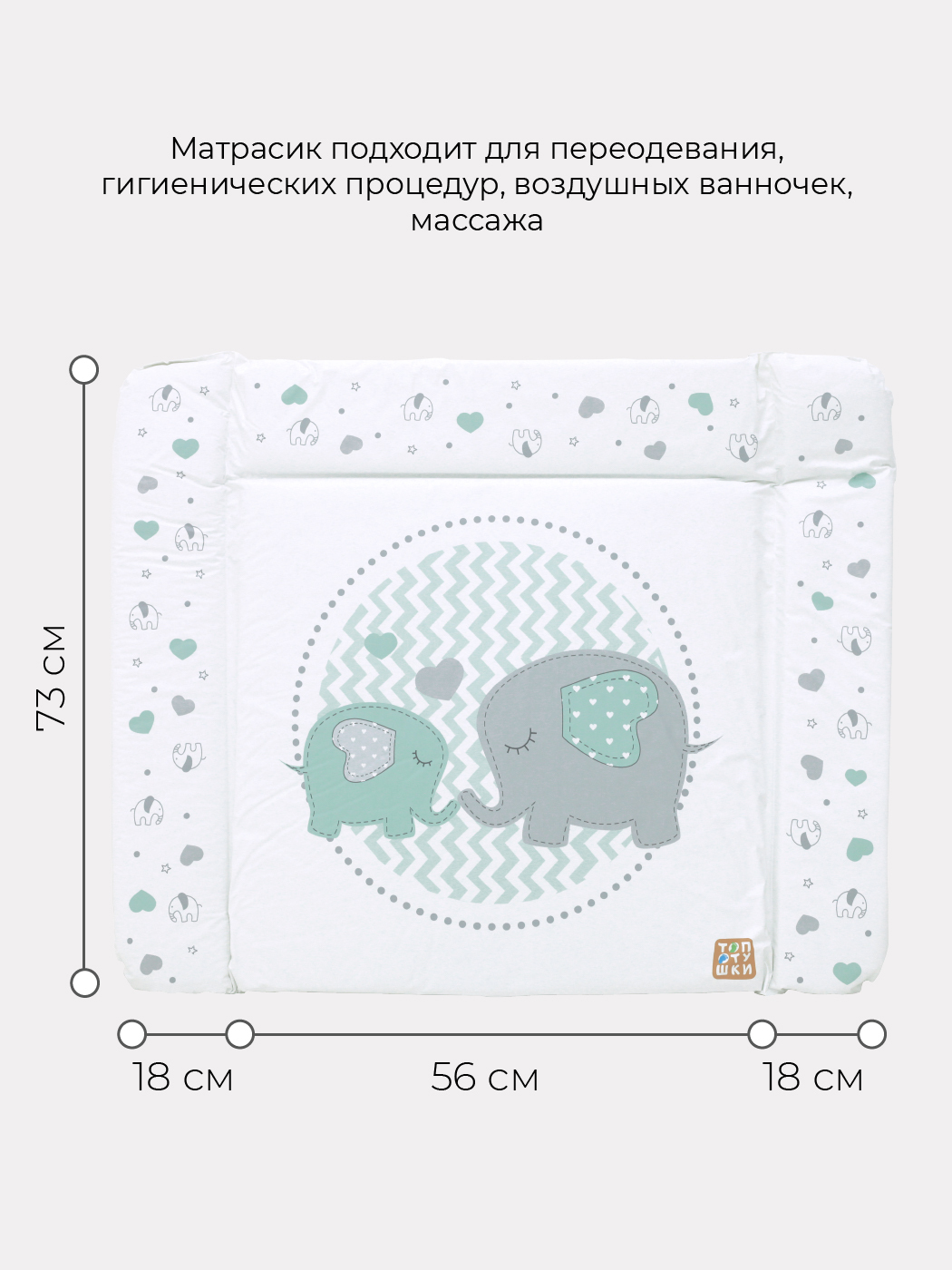 Матрасик для пеленания Топотушки Слоники непромокаемый 92х73х4 см