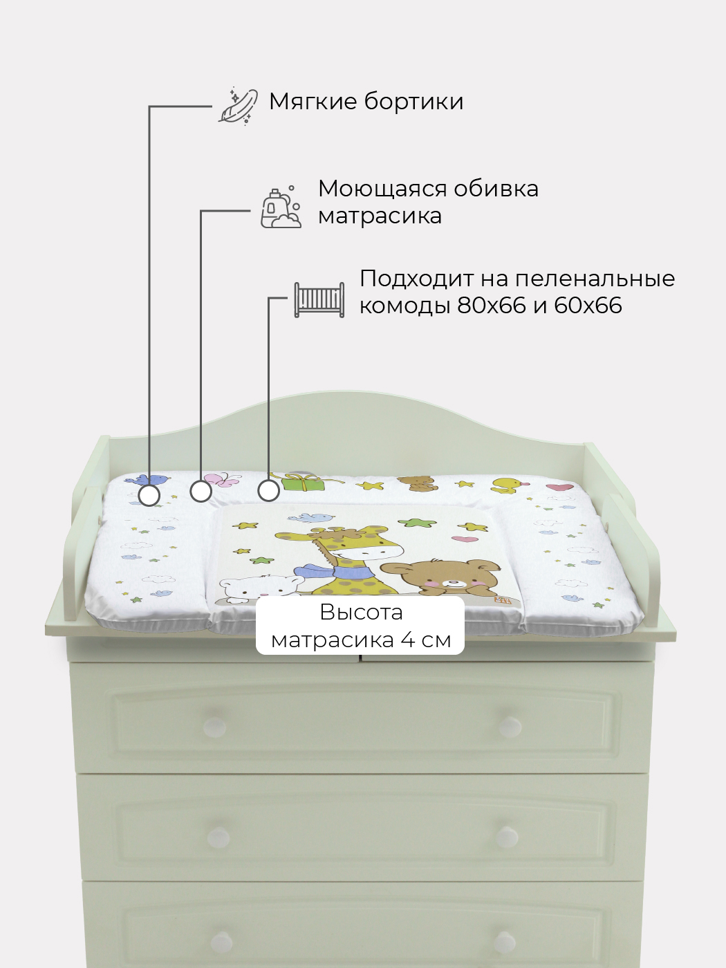 Матрасик для пеленания Топотушки Детский мир непромокаемый 80х71х4 см
