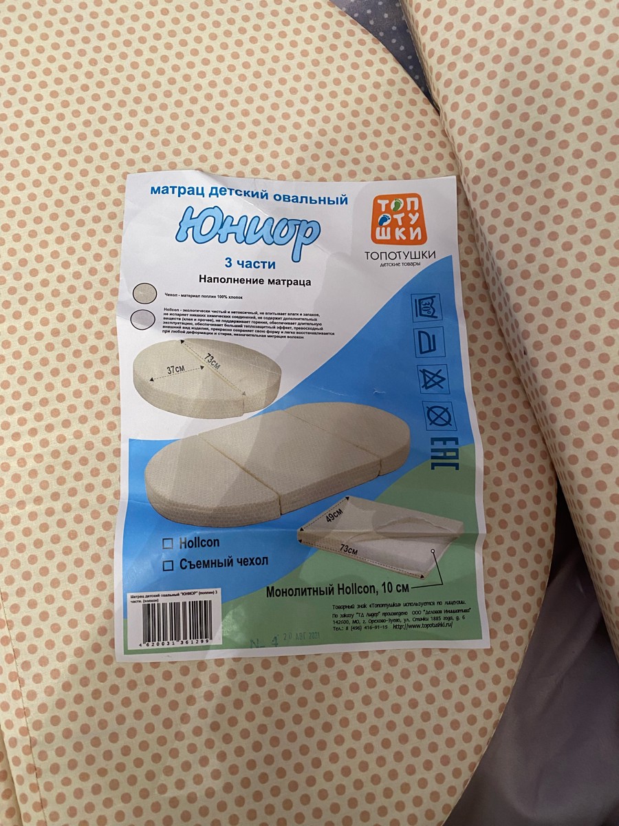 Матрас детский Топотушки в кроватку Юниор овальный поплин 125x75 (арт.31), Беспружинный, 65х125 см
