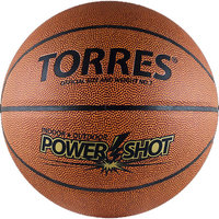 Мяч баскетбольный Torres Power Shot, коричневый, 7, Тренировочный, Клееный