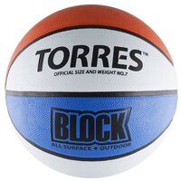 Мяч баск. TORRES Block р. 7 резина, бело-сине-красный