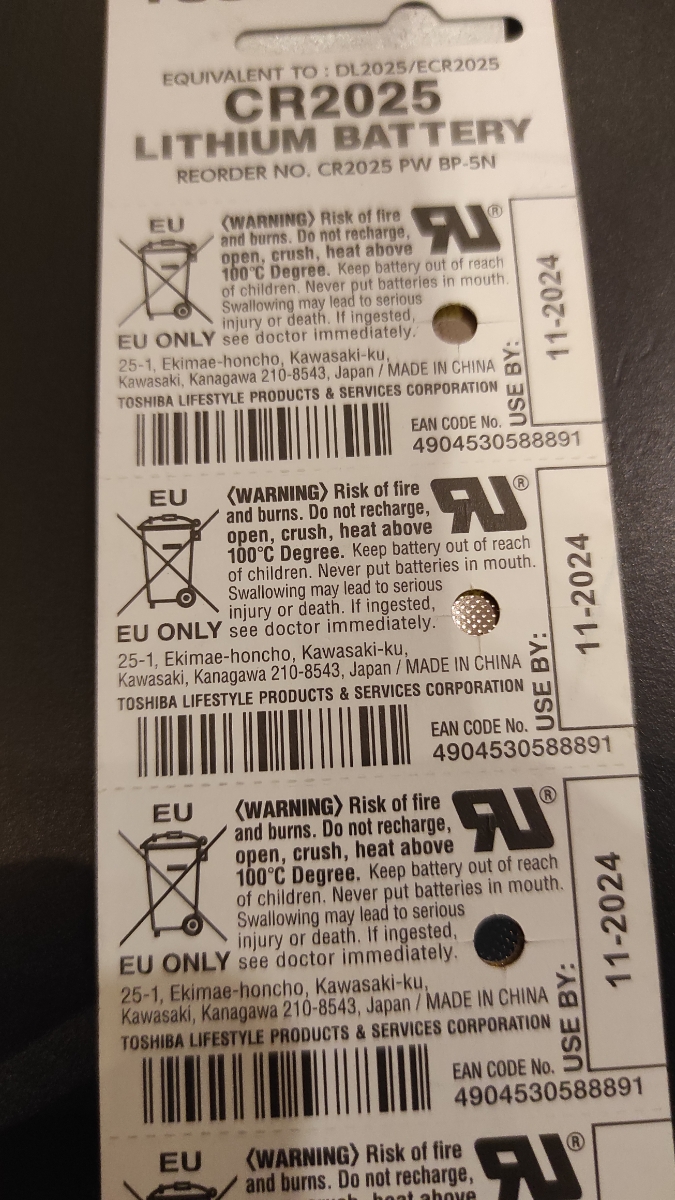 Батарейки Toshiba Lithium coins CR2025 PW BP-5, блистер отрывной 5 шт.