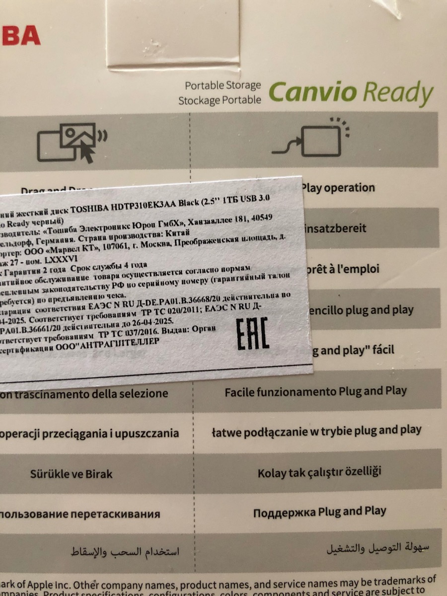 2 ТБ Внешний жесткий диск Toshiba Canvio Ready HDTP (HDTP320EK3AA), черный