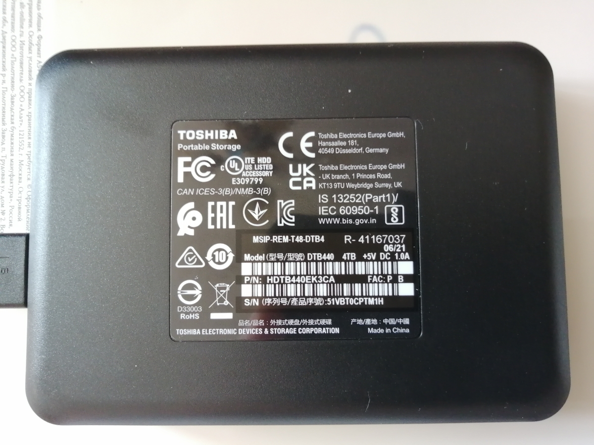 4 ТБ Внешний жесткий диск Toshiba Canvio Basics HDTB420EK3AA (HDTB440EK3CA), черный