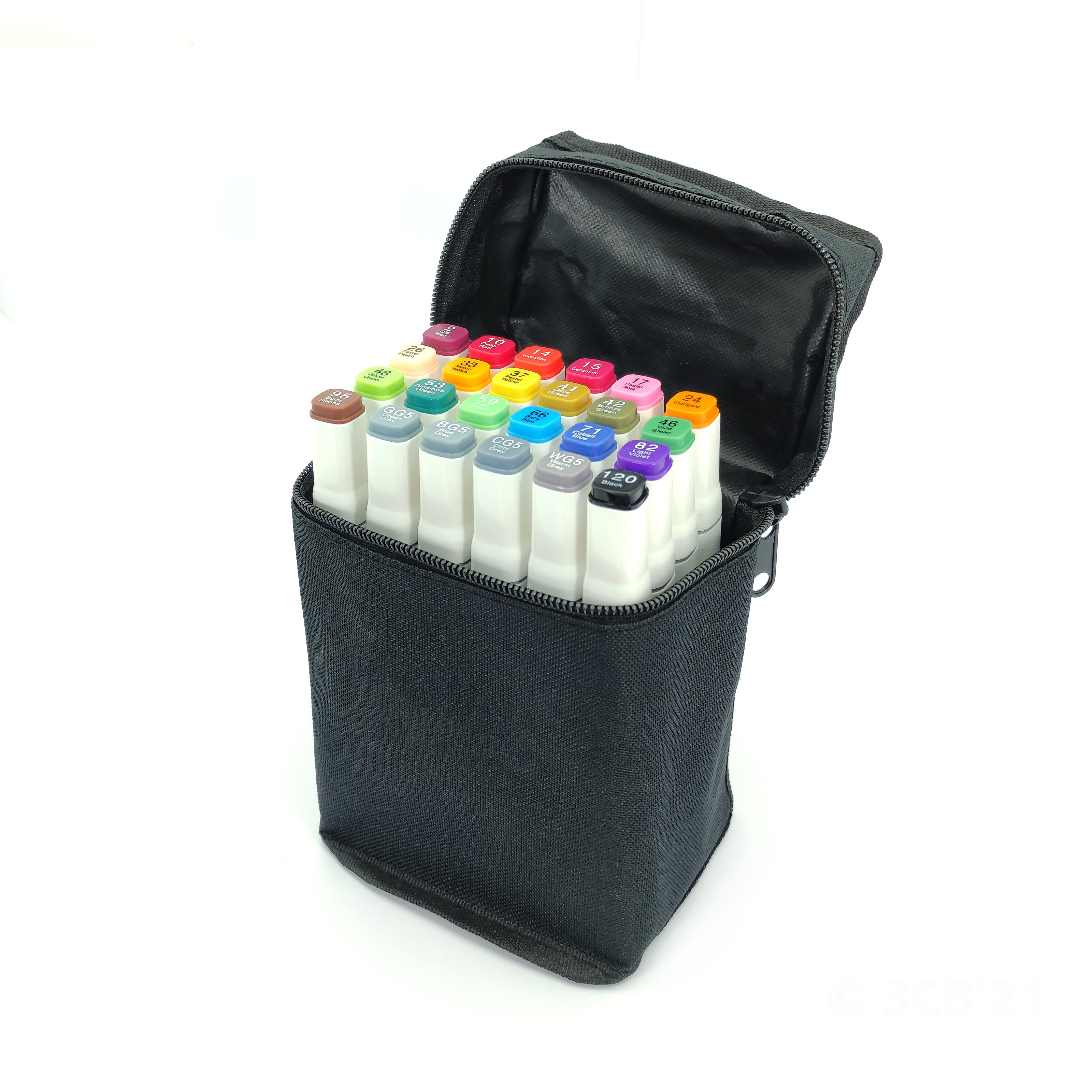 Набор фломастеров двусторонних Toy Chi Raven в черном мешке, 24 цвета, черный, с подставками