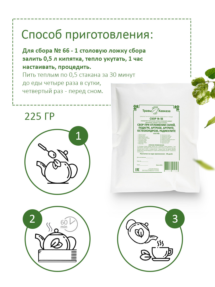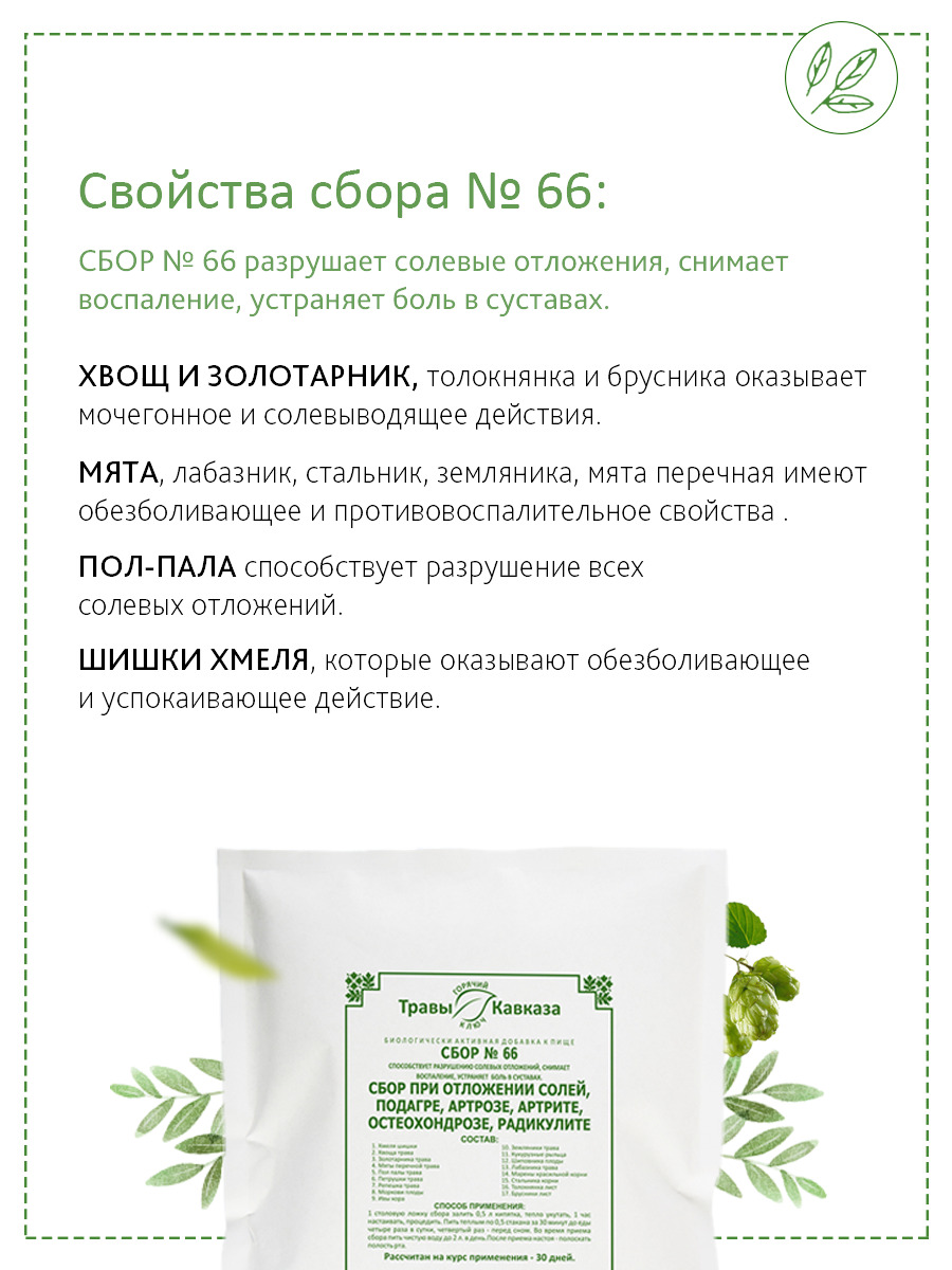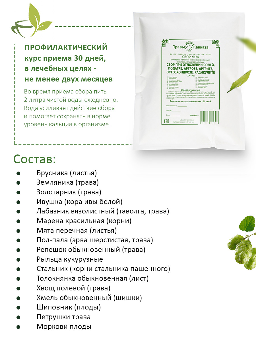 Травы Кавказа / Сбор № 66 при отложении солей, подагре, артрозе, артрите, остеохондрозе, радикулите