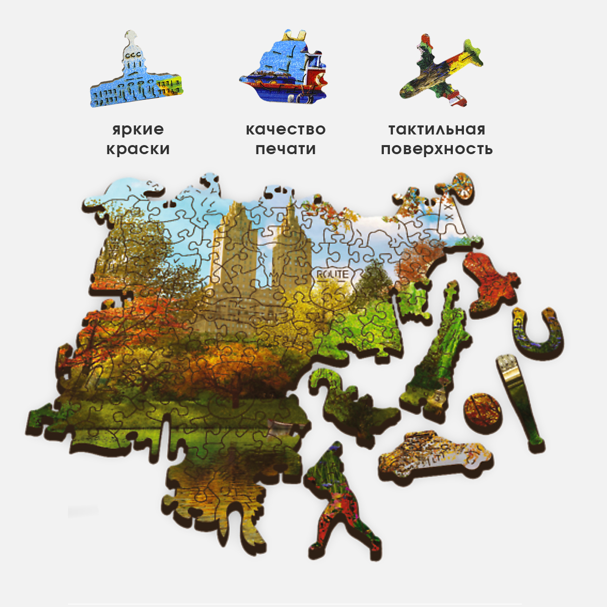Деревянные пазлы для детей и взрослых Trefl "Манхэттен" 37.5х25.4 см, 501 уникальная деталь