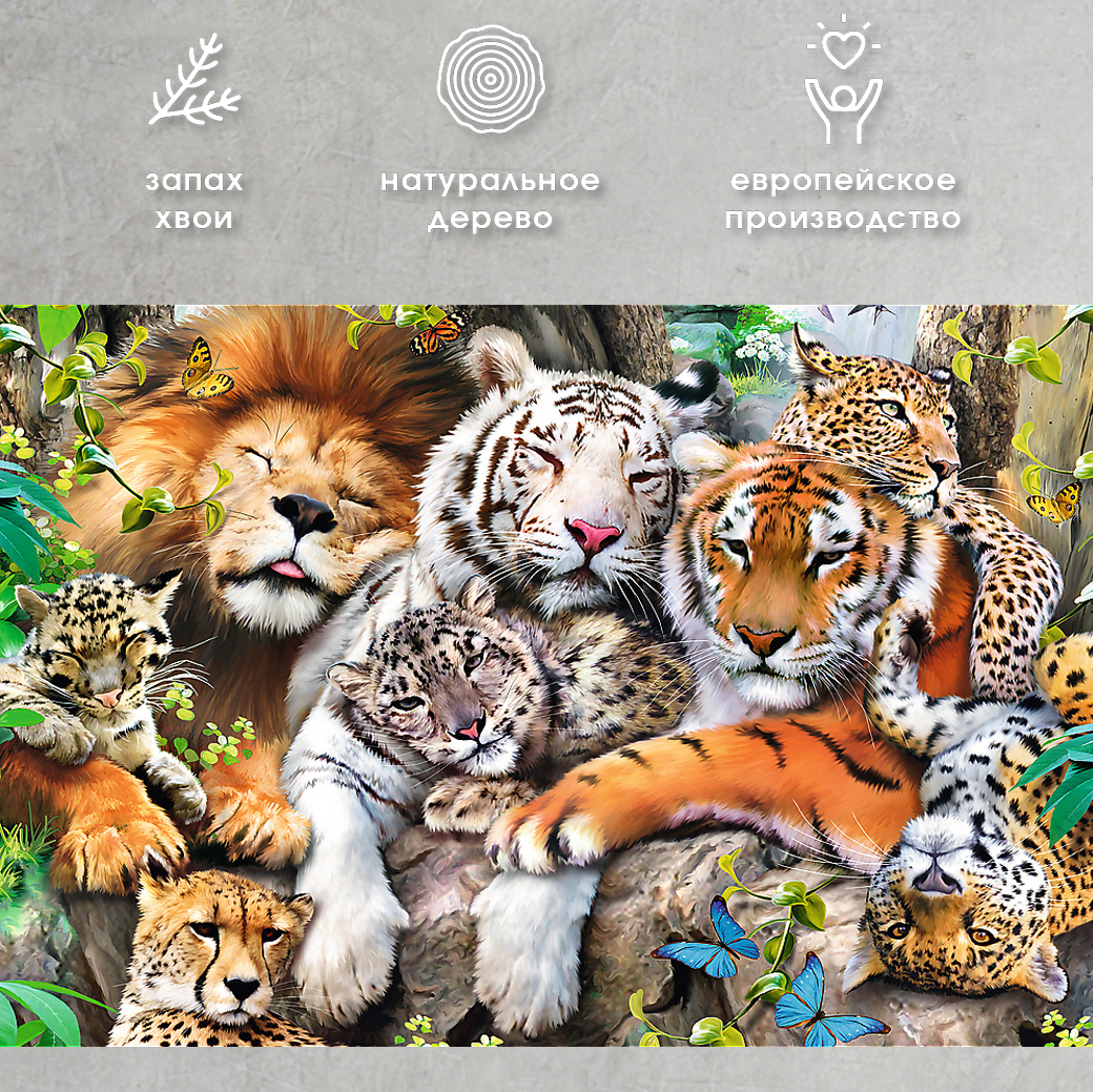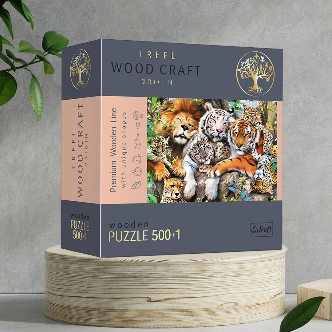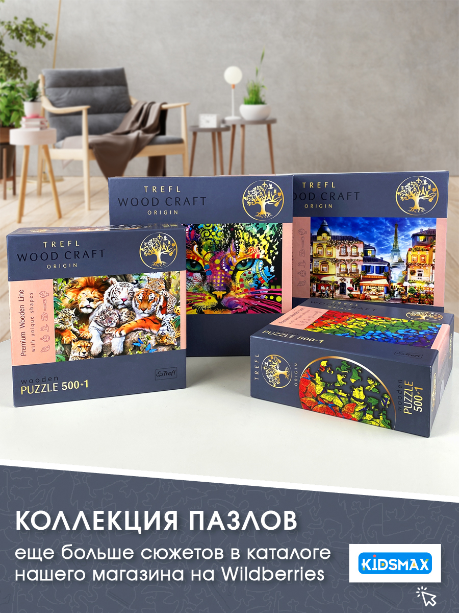 Деревянные пазлы для детей и взрослых Trefl "Дикие кошки" 37.5х25.4 см, 501 уникальная деталь