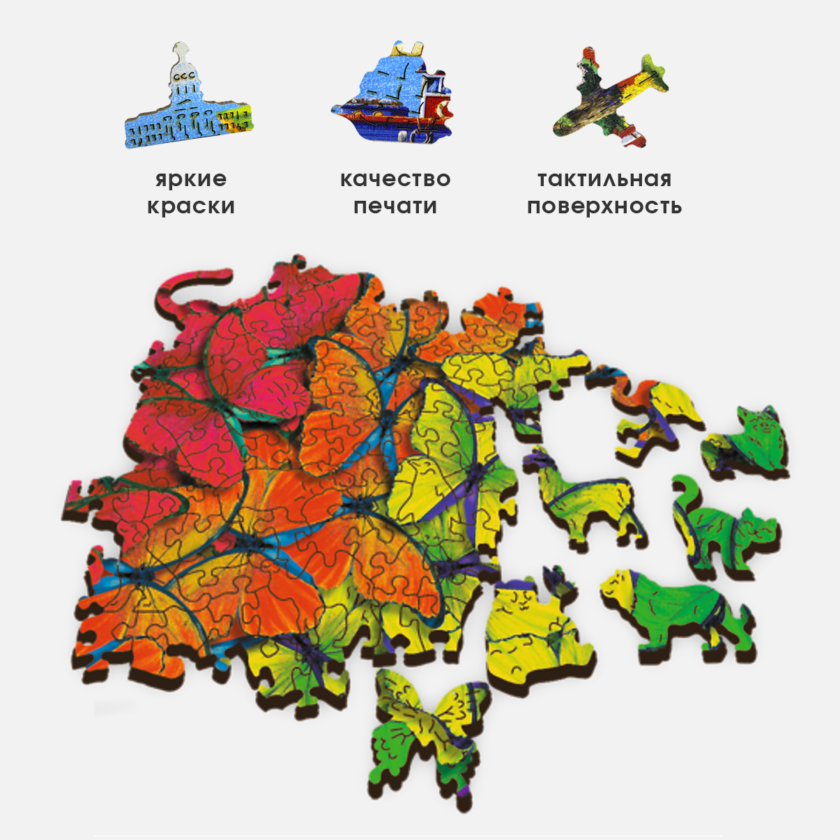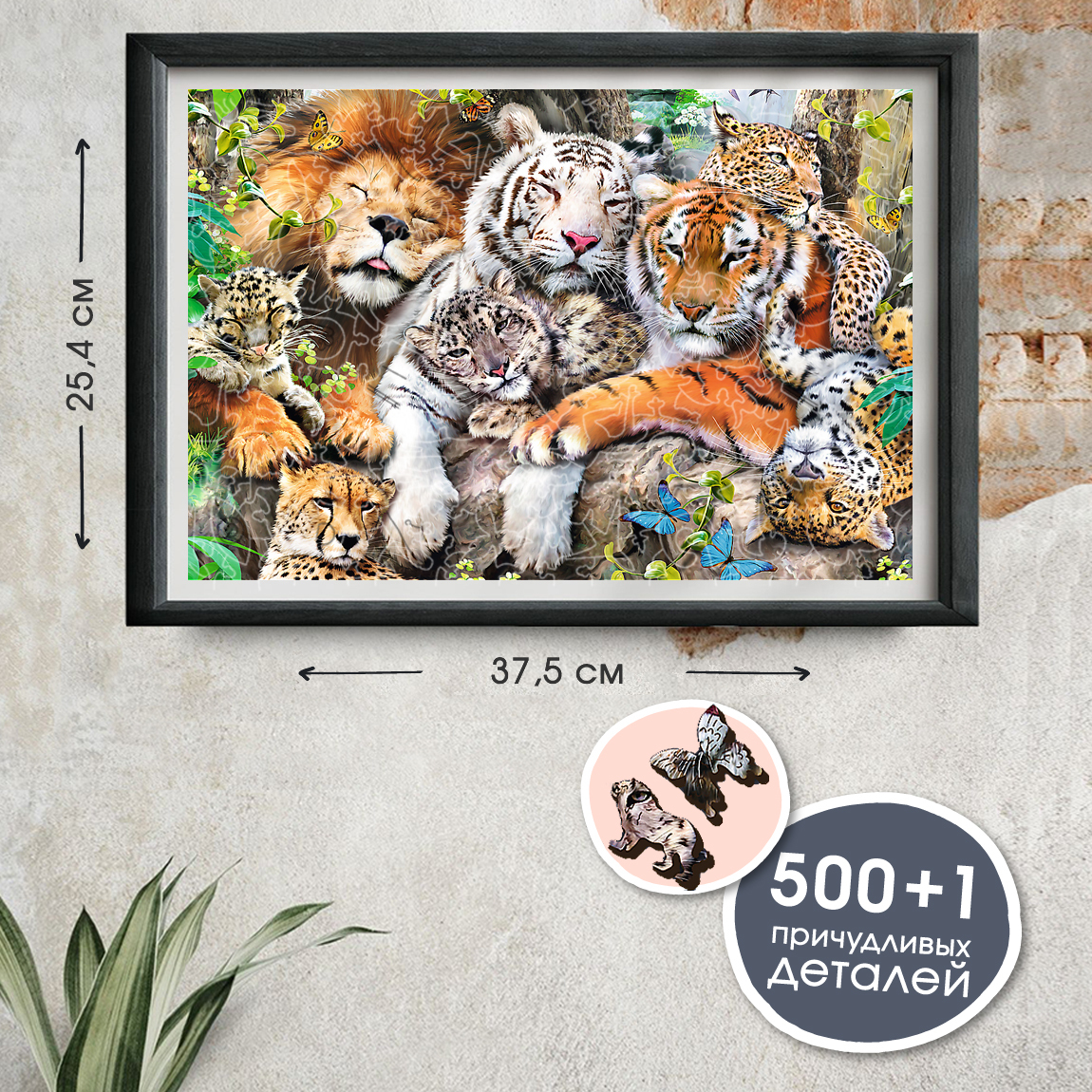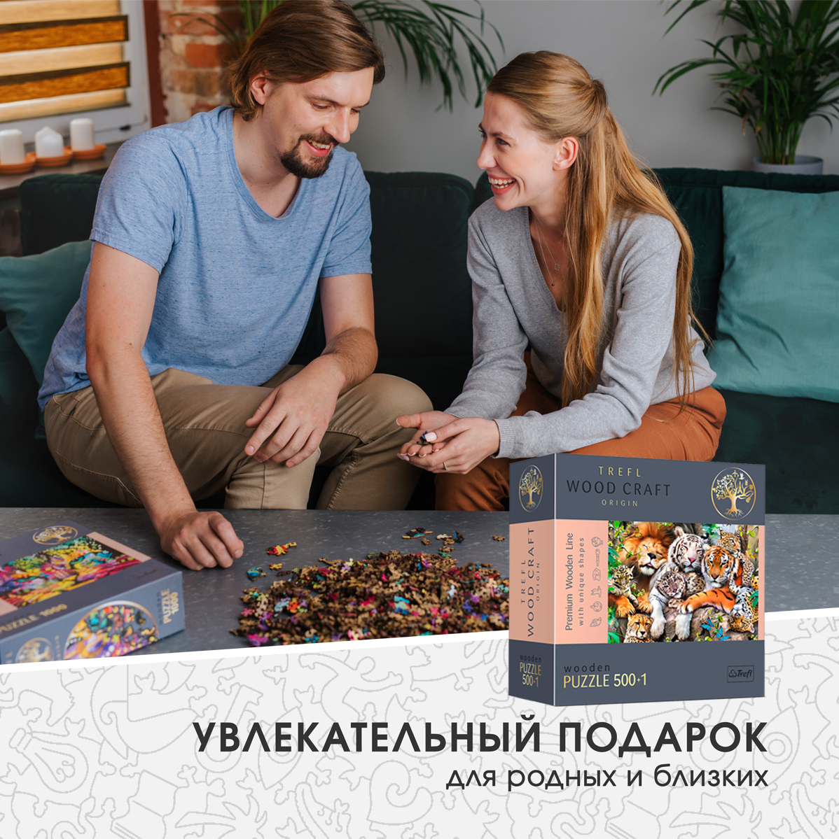 Деревянные пазлы для детей и взрослых Trefl "Дикие кошки" 37.5х25.4 см, 501 уникальная деталь