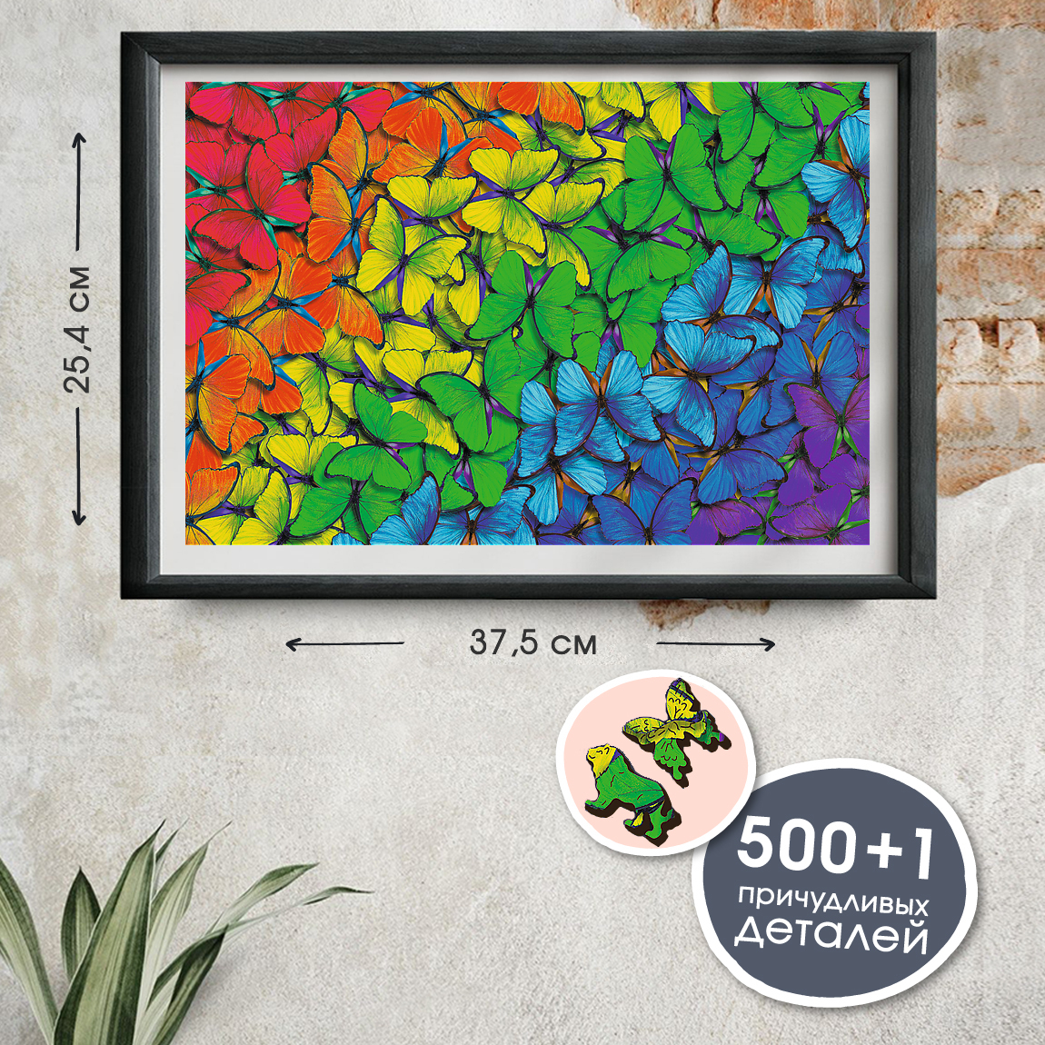 Деревянные пазлы для детей и взрослых Trefl "Радужные бабочки" 37.5х25.4 см, 501 уникальная деталь