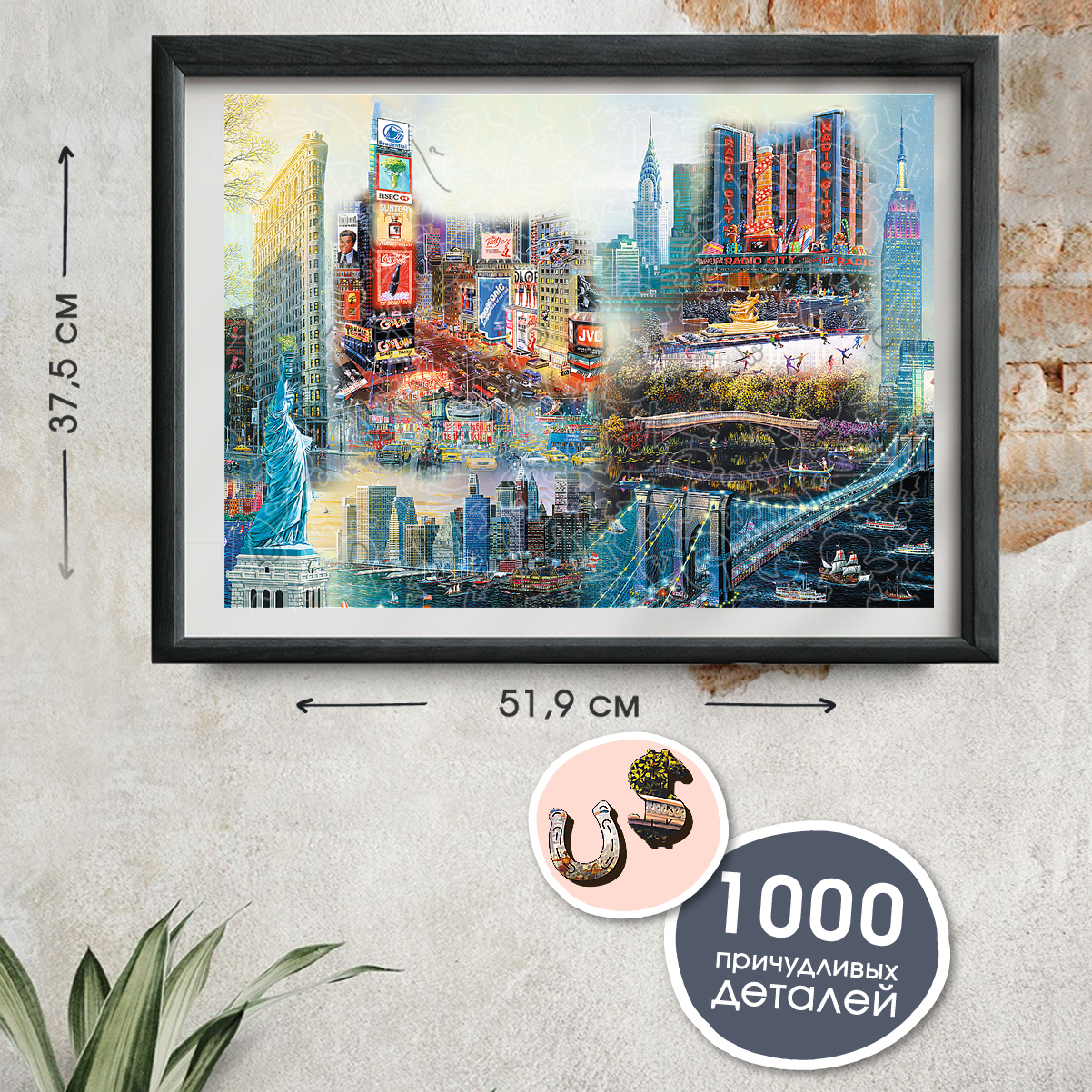 Деревянные пазлы для детей и взрослых Trefl "Нью Йорк" 51.9x37.5 см, 1000 уникальных деталей