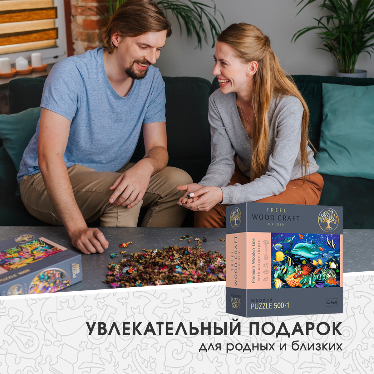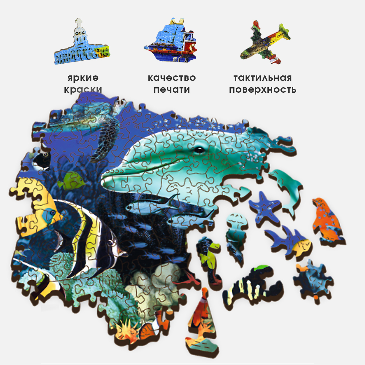 Деревянные пазлы для детей и взрослых Trefl "Морская жизнь" 37.5х25.4 см, 501 уникальная деталь