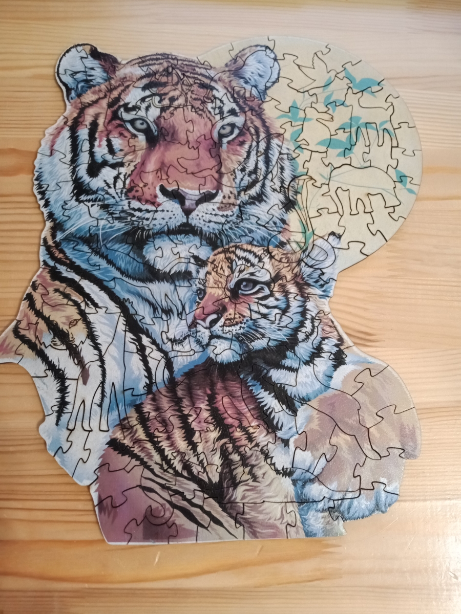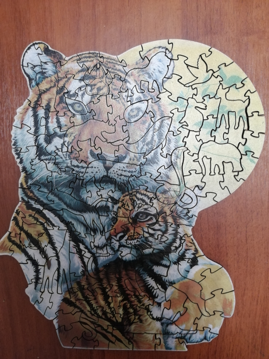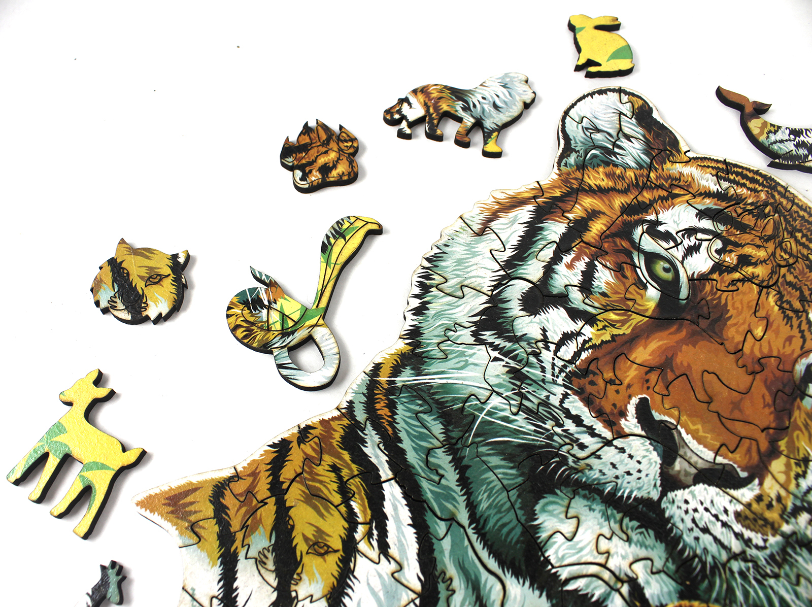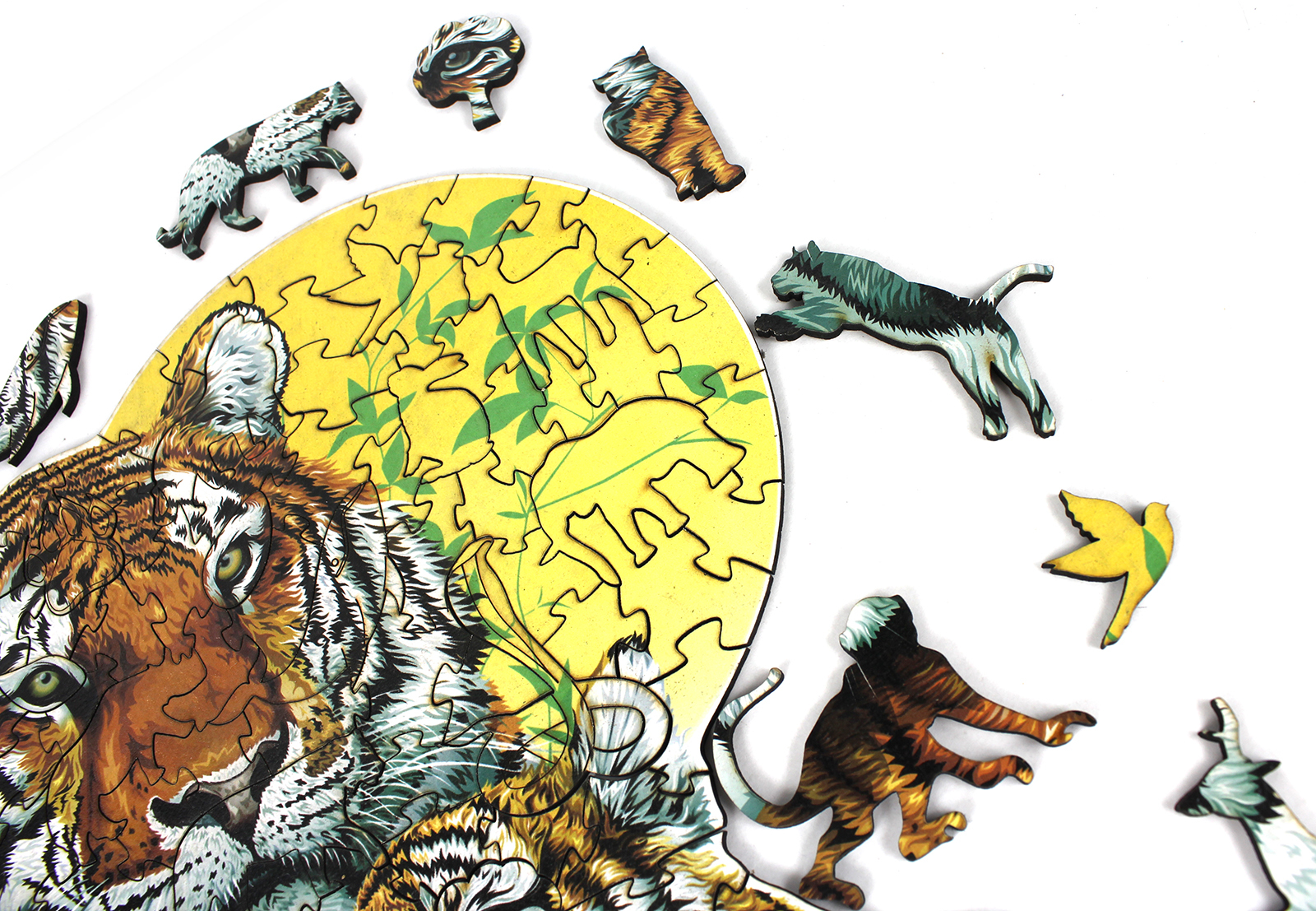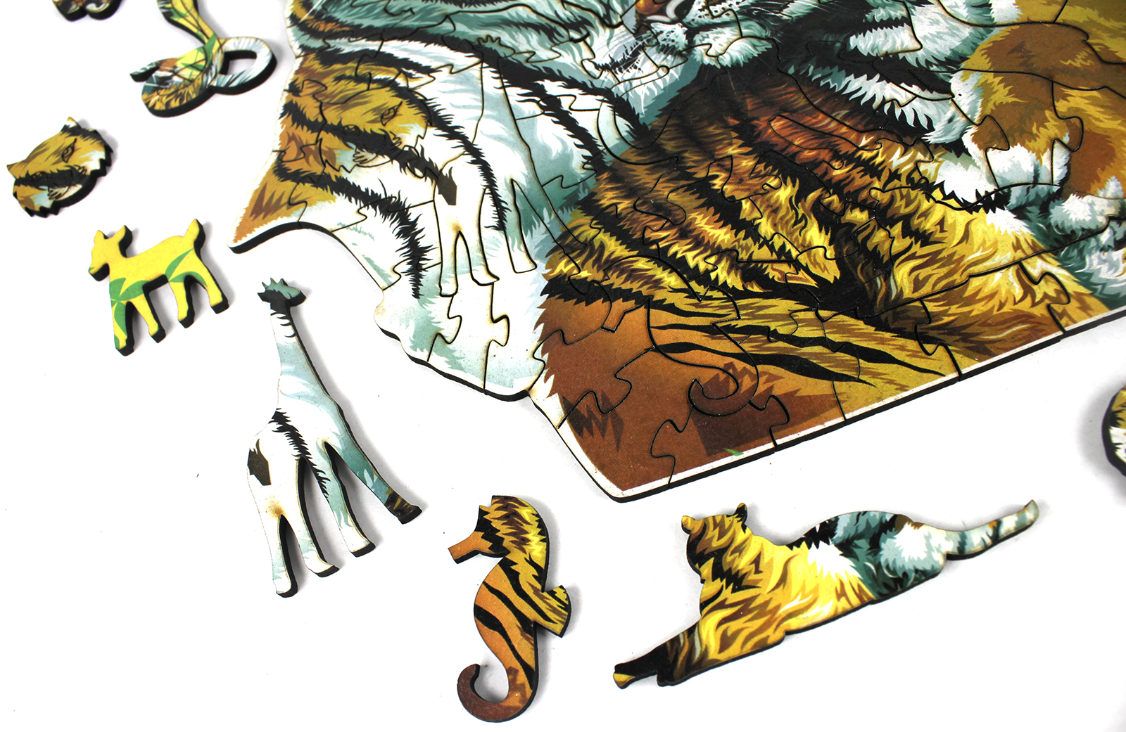 Большой деревянный фигурный пазл ТИГРЫ 132 детали 30х26см для детей и взрослых