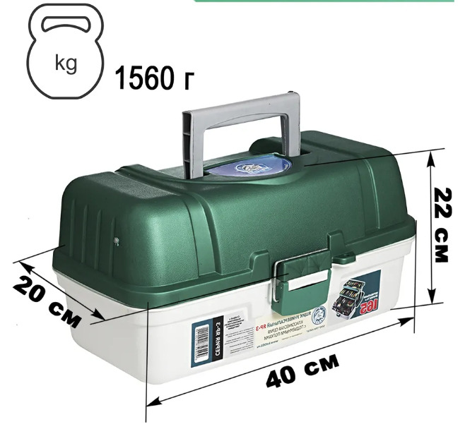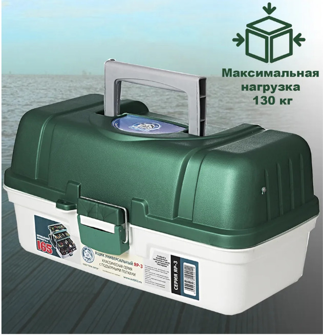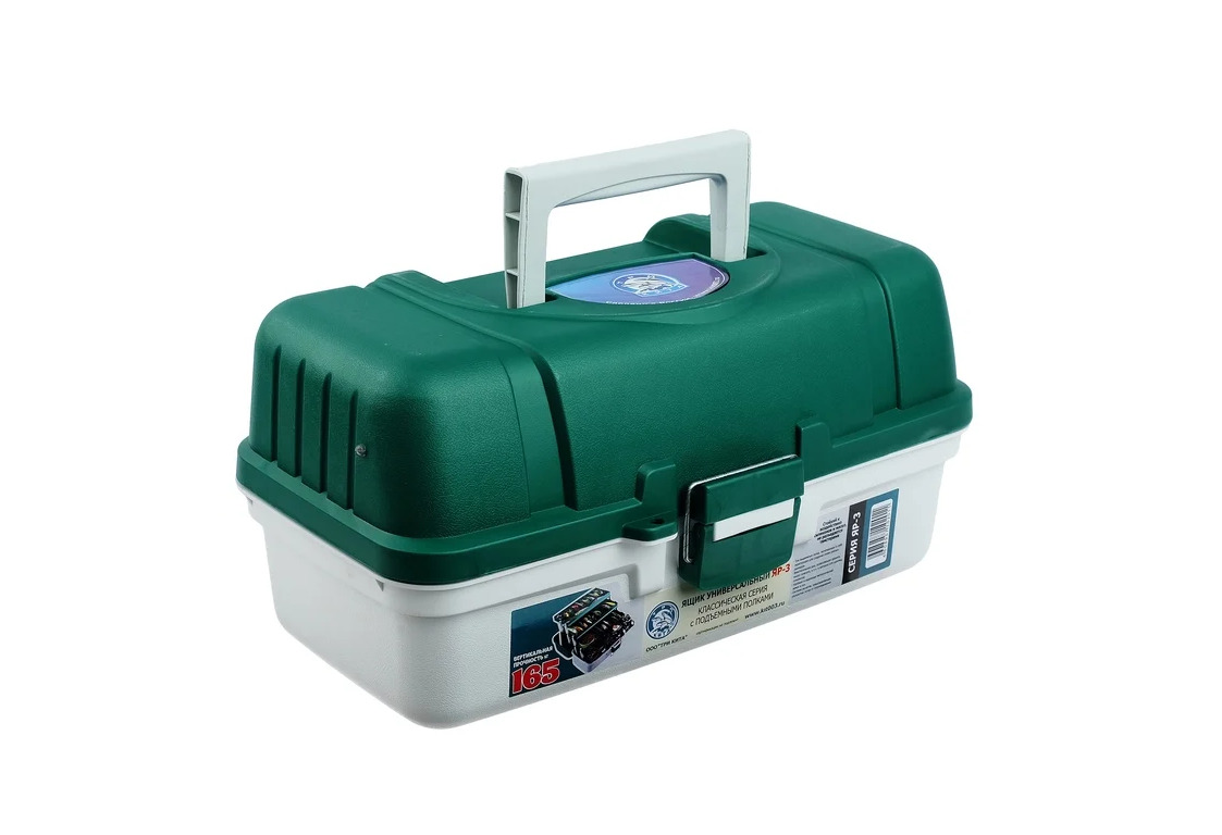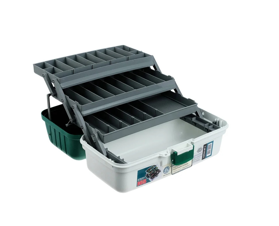 Ящик рыболовный 3-х полочный (3 лотка) "Три кита" ЯР-3, зеленый