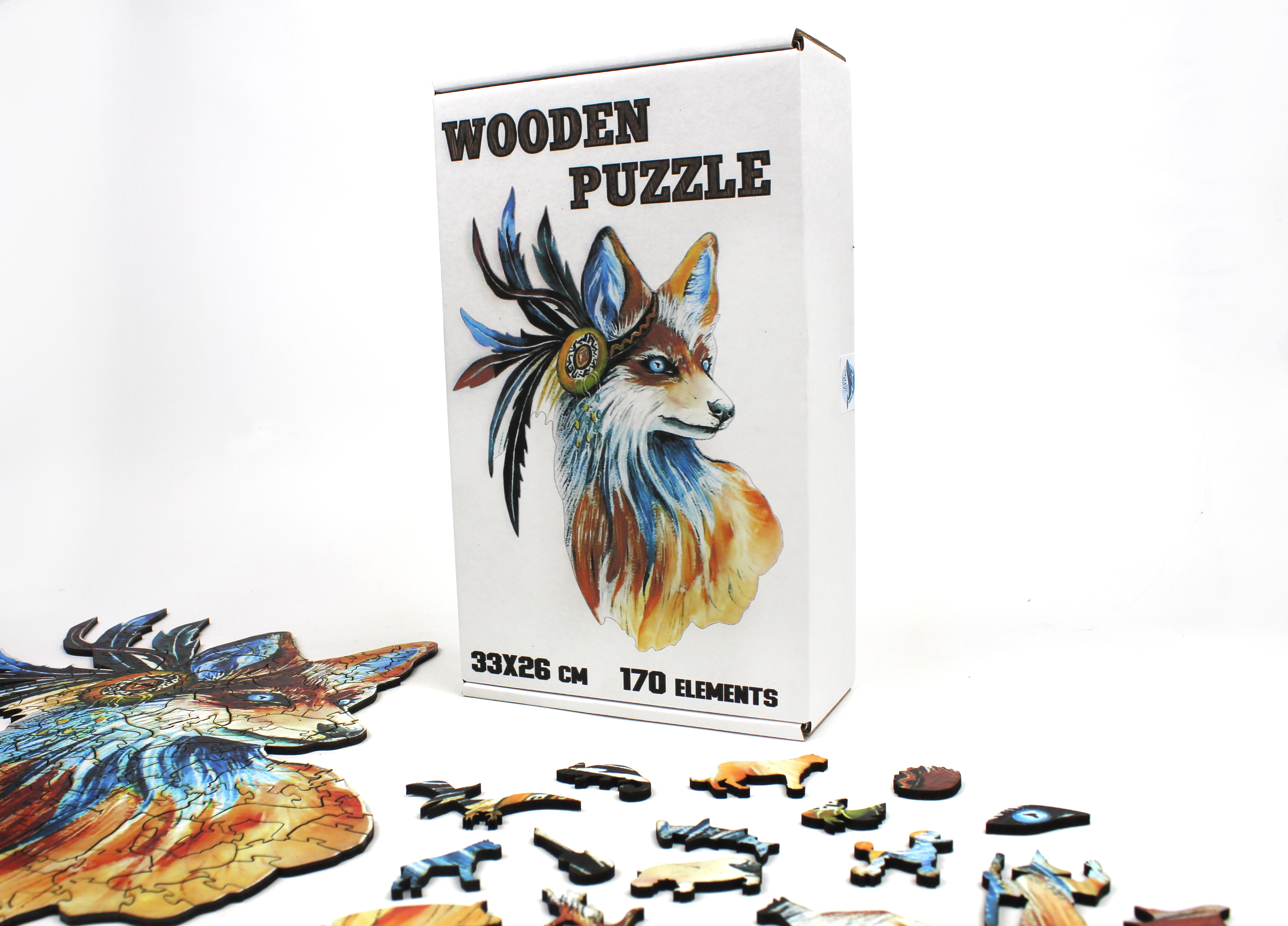 Деревянный фигурный пазл ЛИСА 170 деталей 33х26см для детей и взрослых