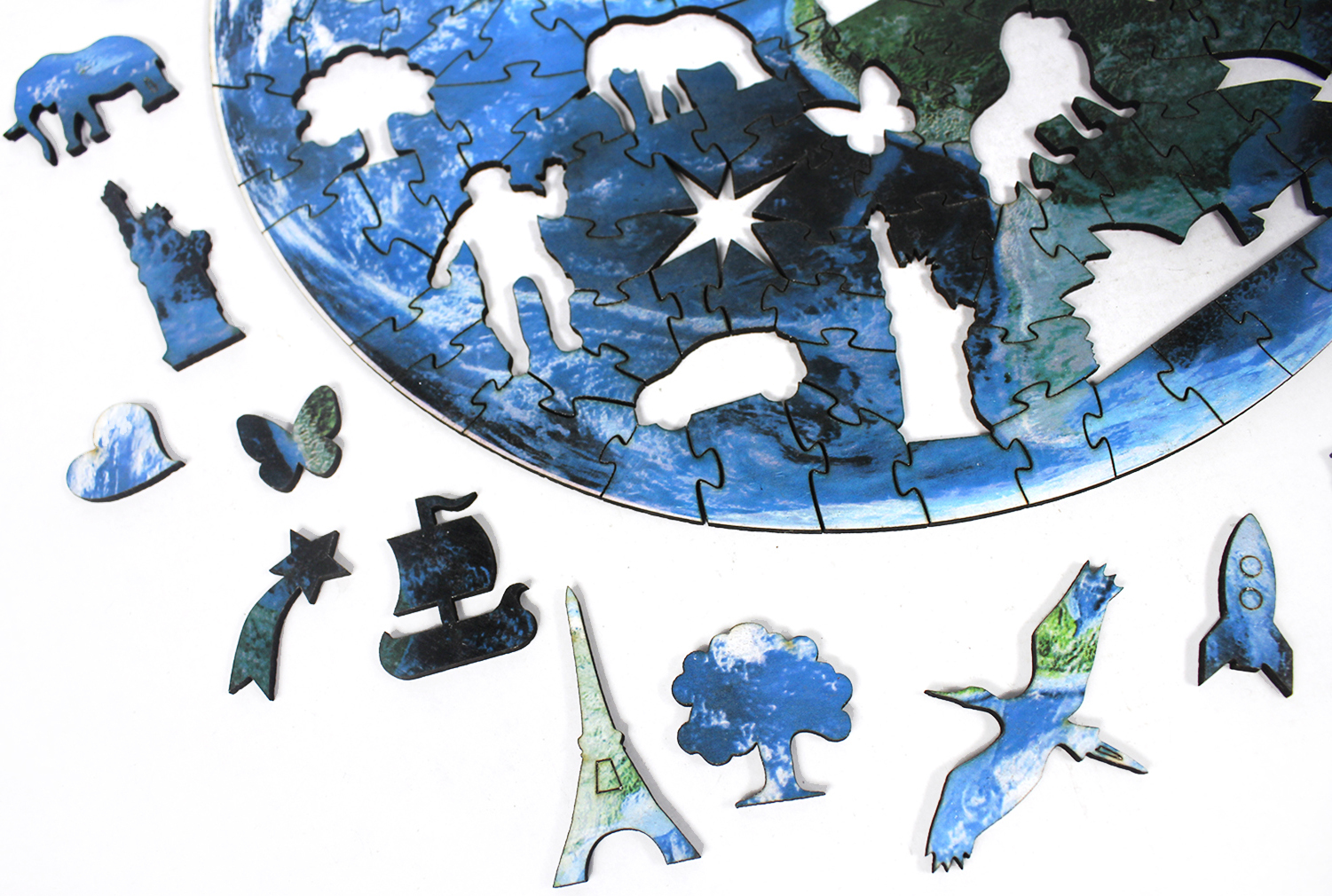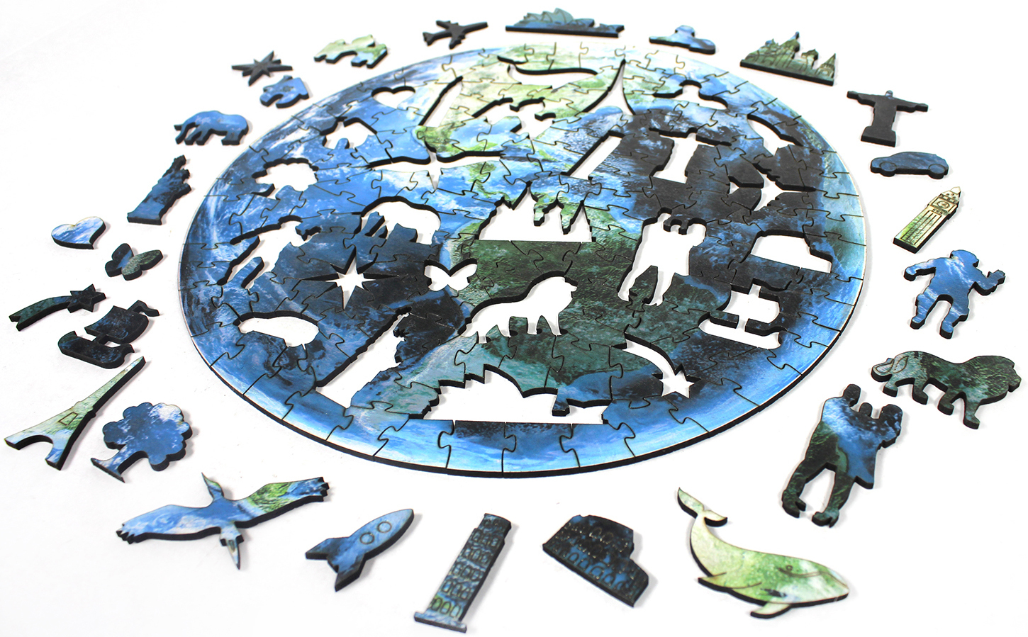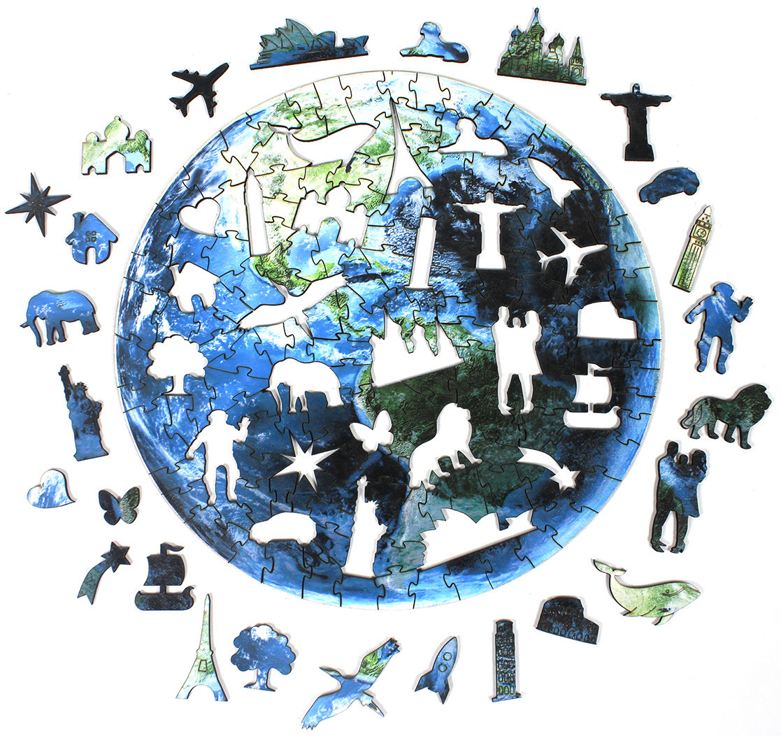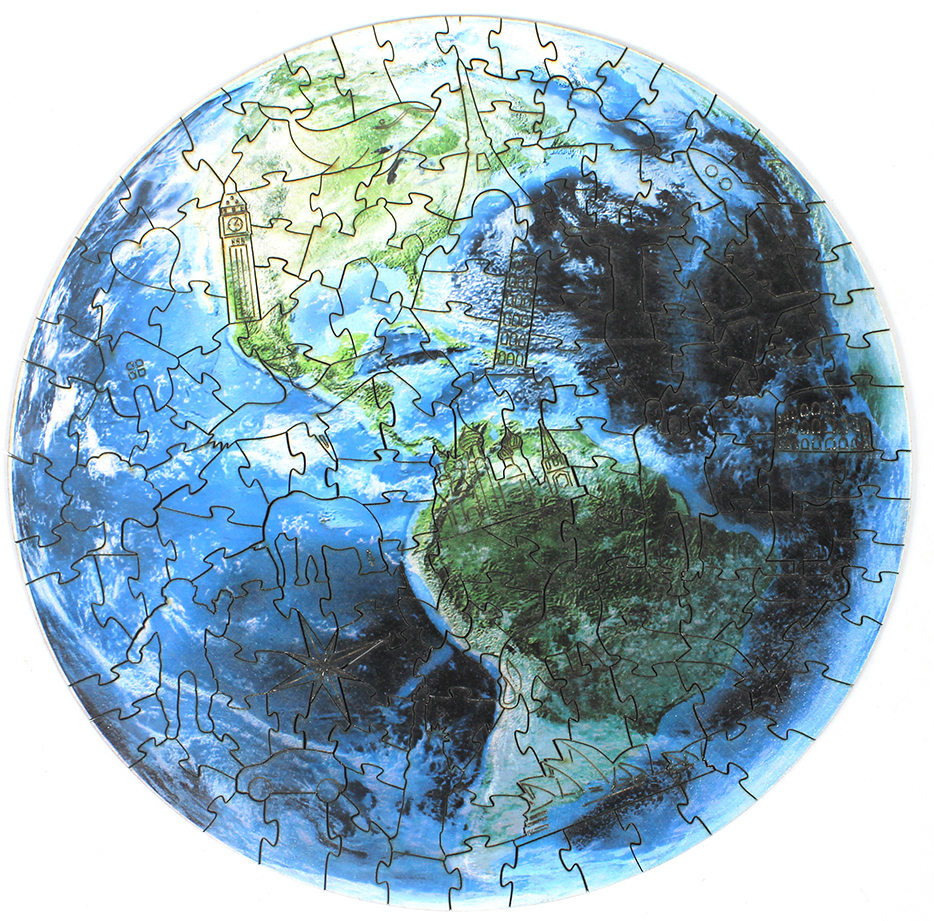 Деревянный фигурный пазл ЗЕМЛЯ 166 деталей 30х30см для детей и взрослых