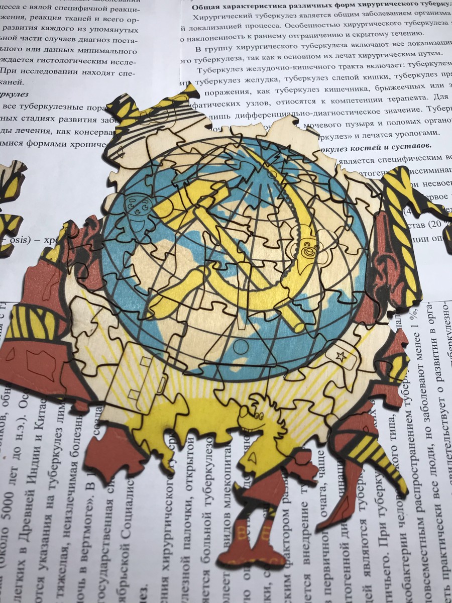 Деревянный фигурный пазл СССР, 121 деталь, 25х25см для детей и взрослых