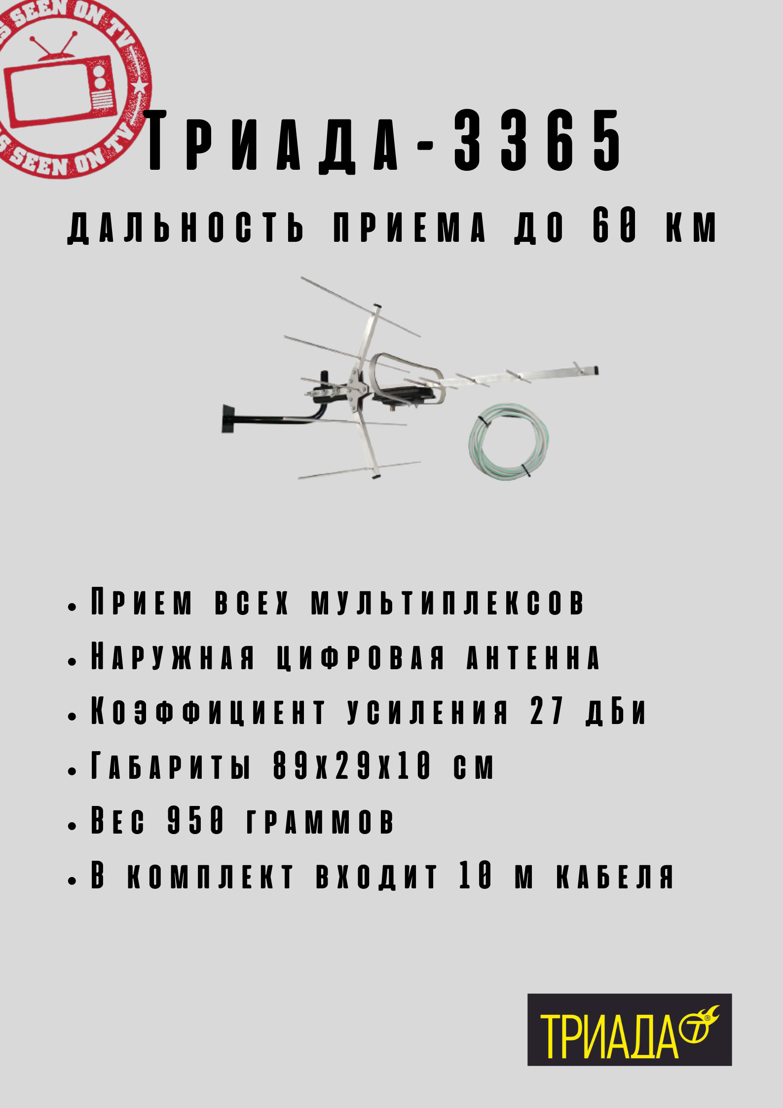 Антенна телевизионная Tриада-3320 DVB-T2, черная