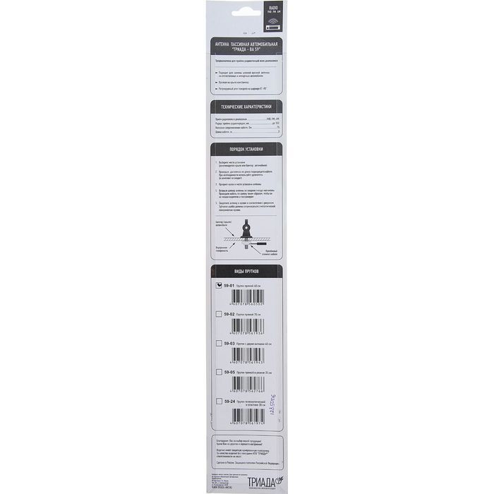 Антенна автомобильная пассивная "Триада-BA 59-01" врезная, поворотная на шарнире