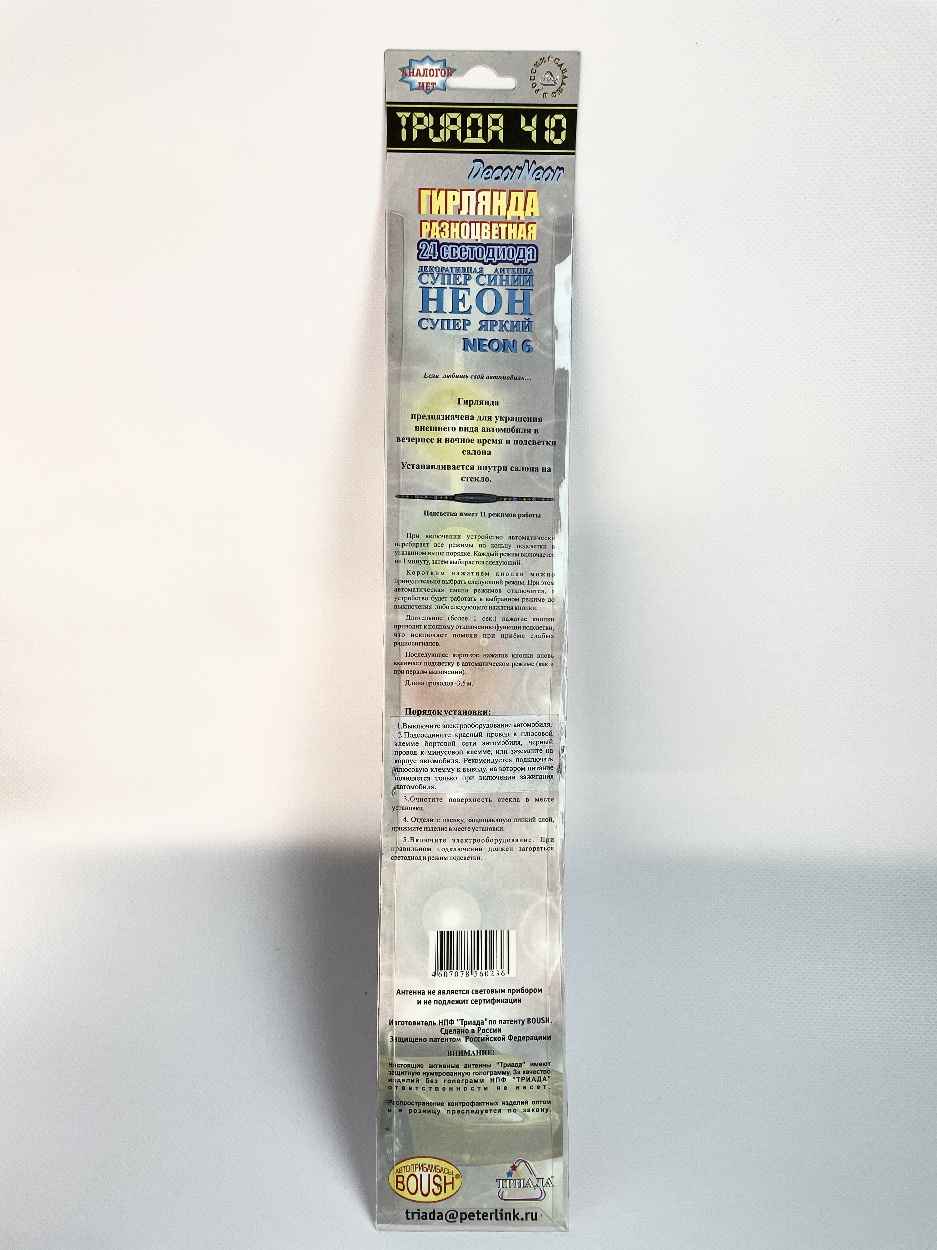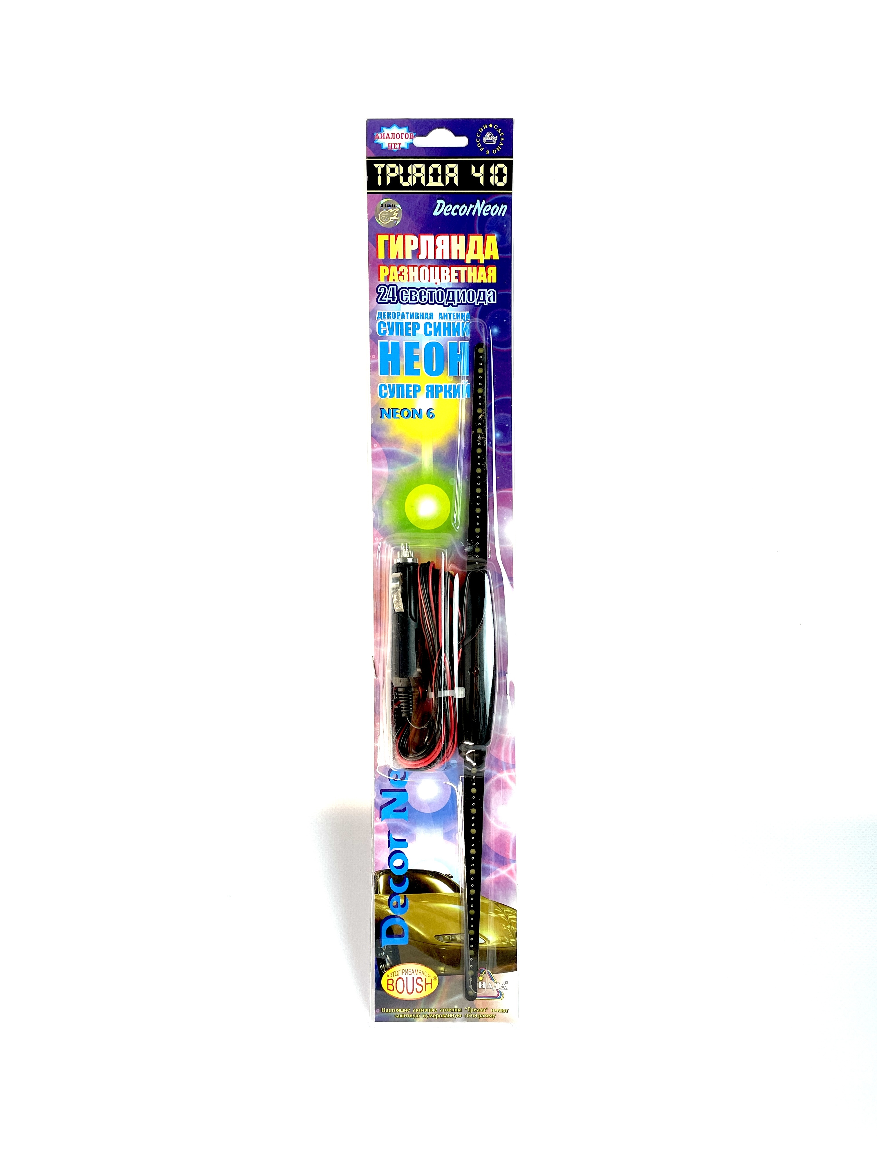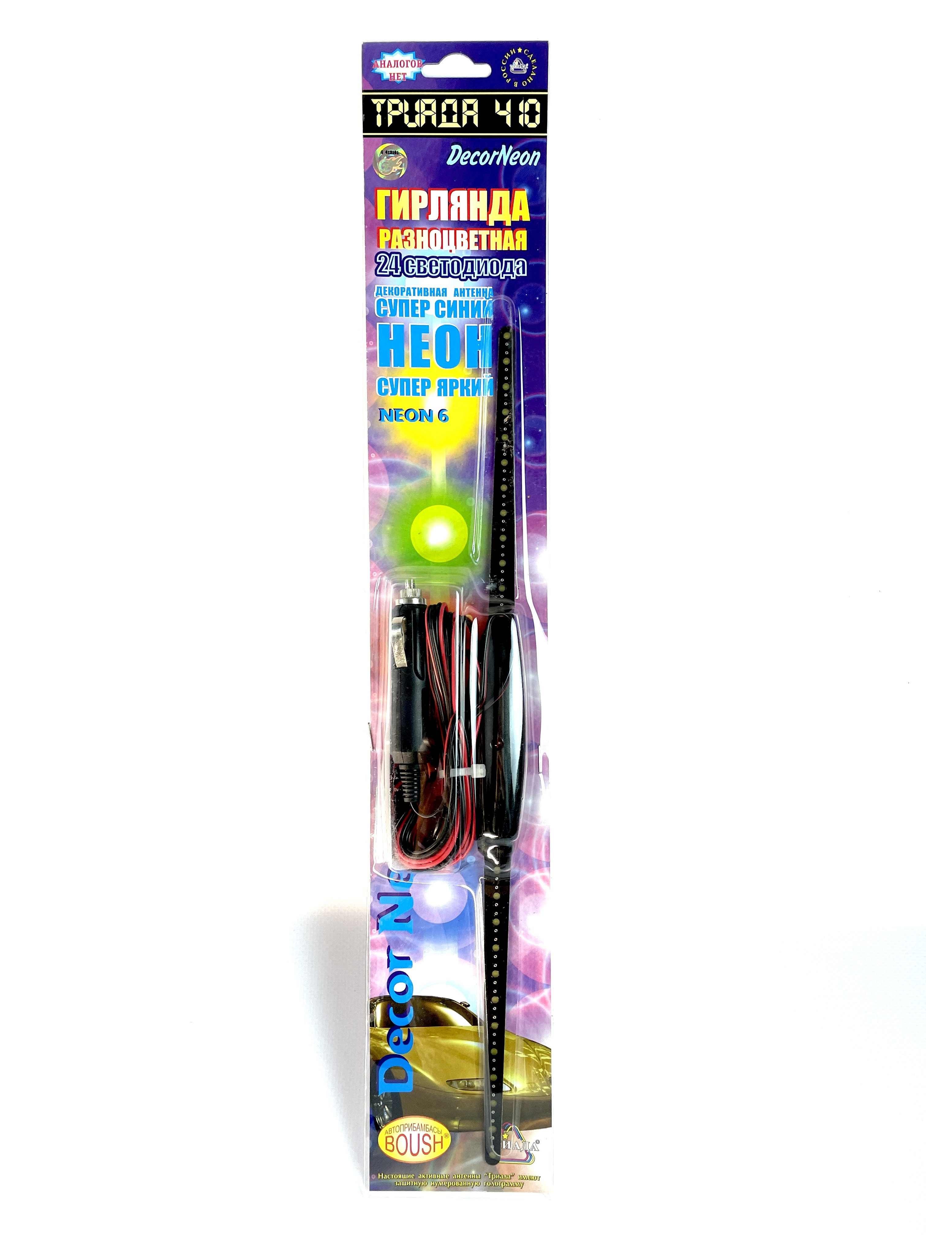 Антенна автомобильная декоративная гирлянда ТРИАДА 410. 24 светодиода. Супер синий Неон