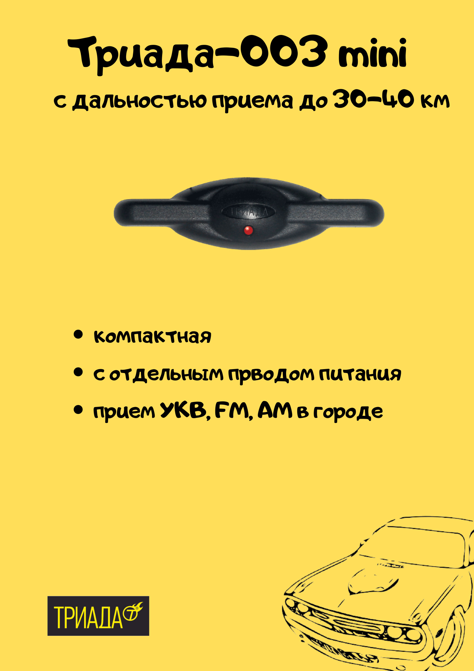 Антенна салонная в автомобиль Триада-003 Mini активная всеволновая для приема радио