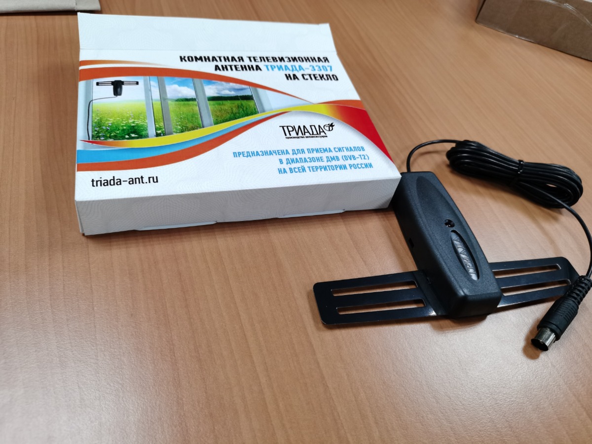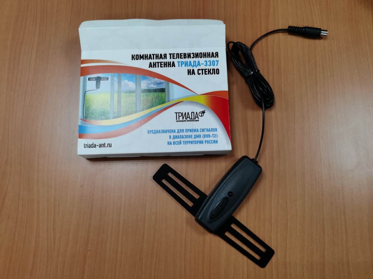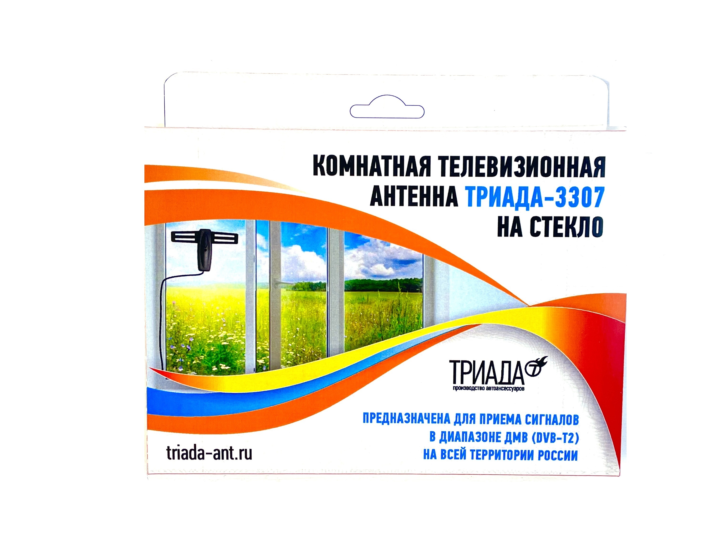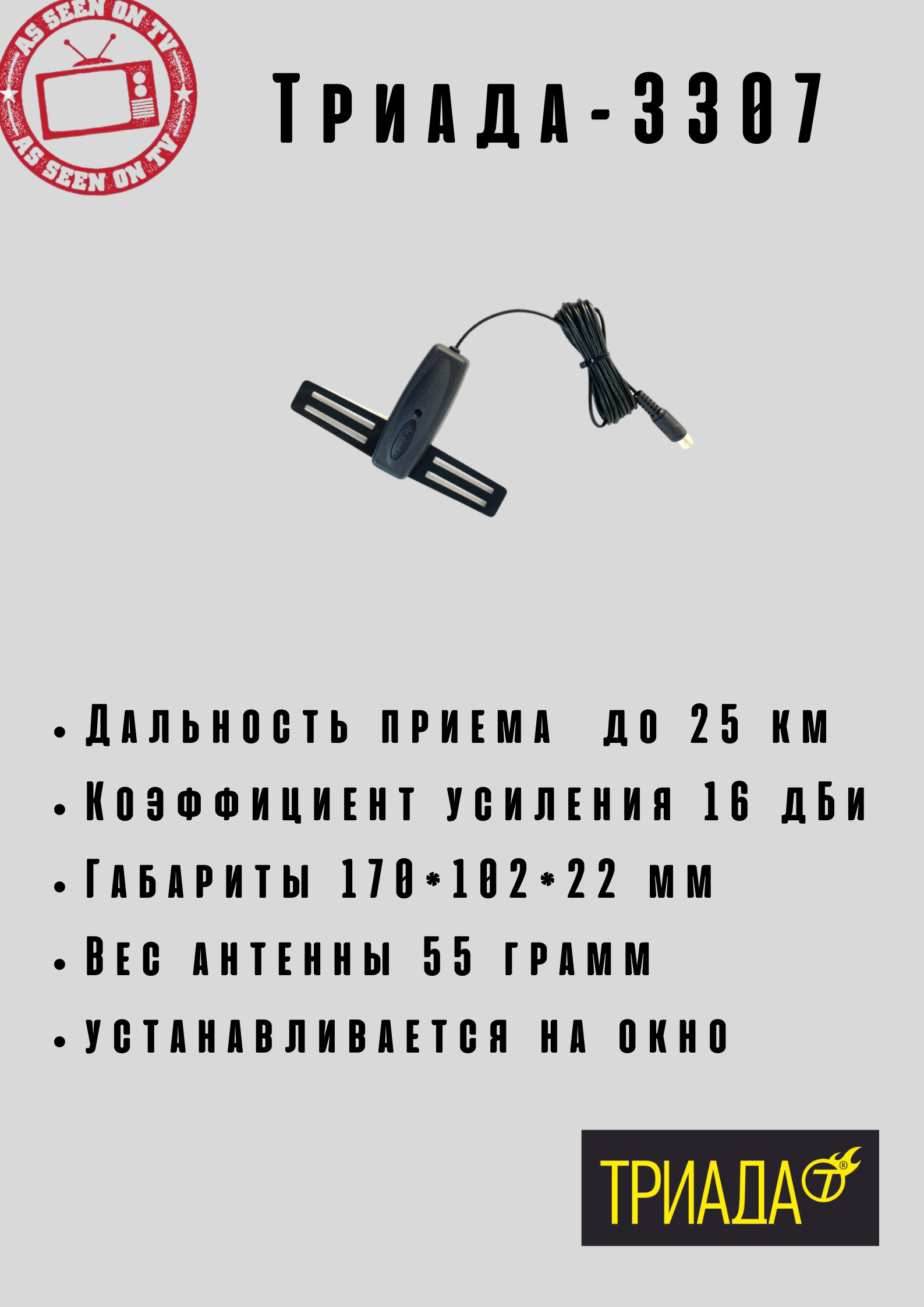 Комнатная активная телевизионная антенна "Триада-3307" DVB-T2, на окно,цифровая, черная