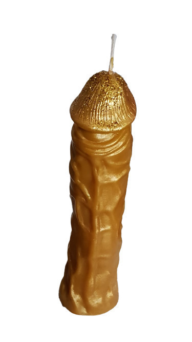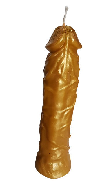 Свеча восковая "Член" высота 21 см, в виде фаллоса. Ручная работа. Цвет золотой