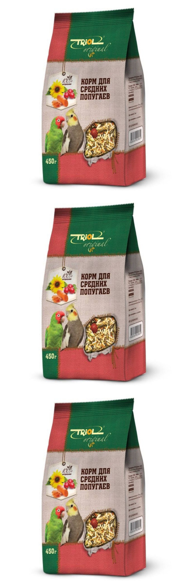 Корм для средних попугаев Triol Original, 450 гр, 3 шт