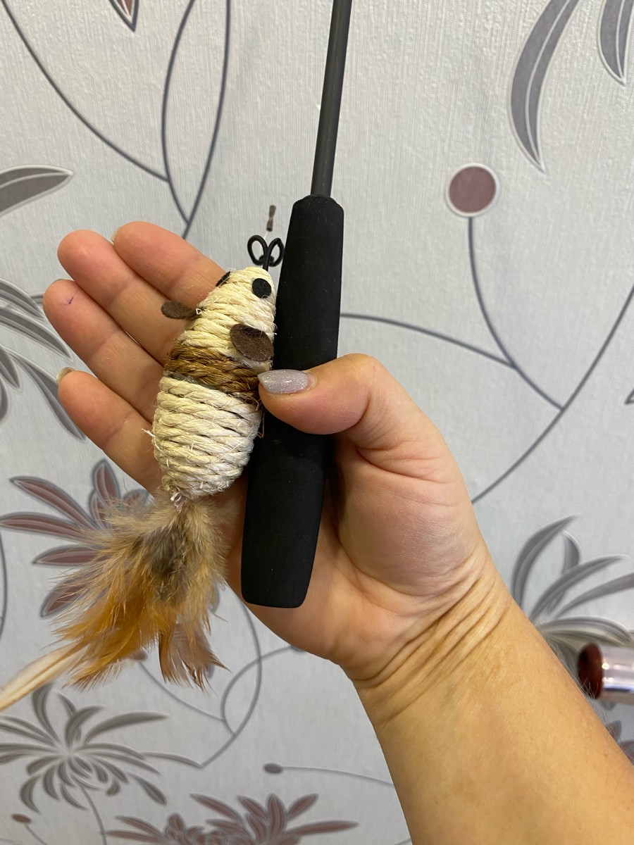 Удочка-дразнилка телескопическая "Мышка с перьями", 370-970/150мм, Triol