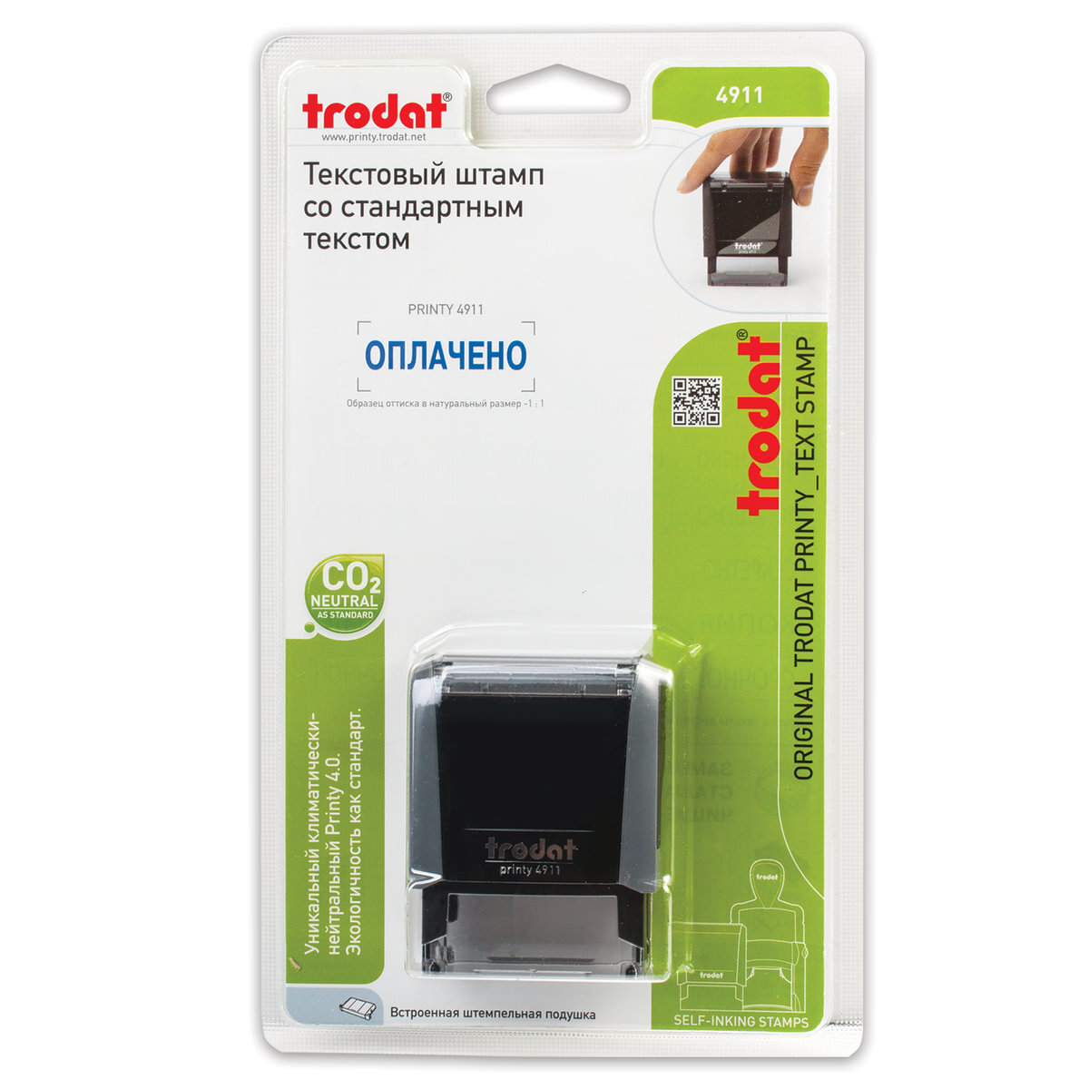 Штамп стандартный Оплачено, оттиск 38х14 мм, синий, Trodat 4911P4-1.2