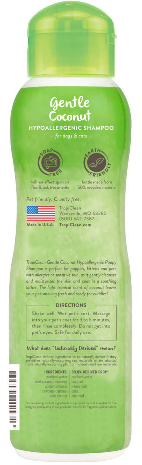 Шампунь для щенков и котят TropiClean "Нежный кокос", гипоаллергенный, 355 мл