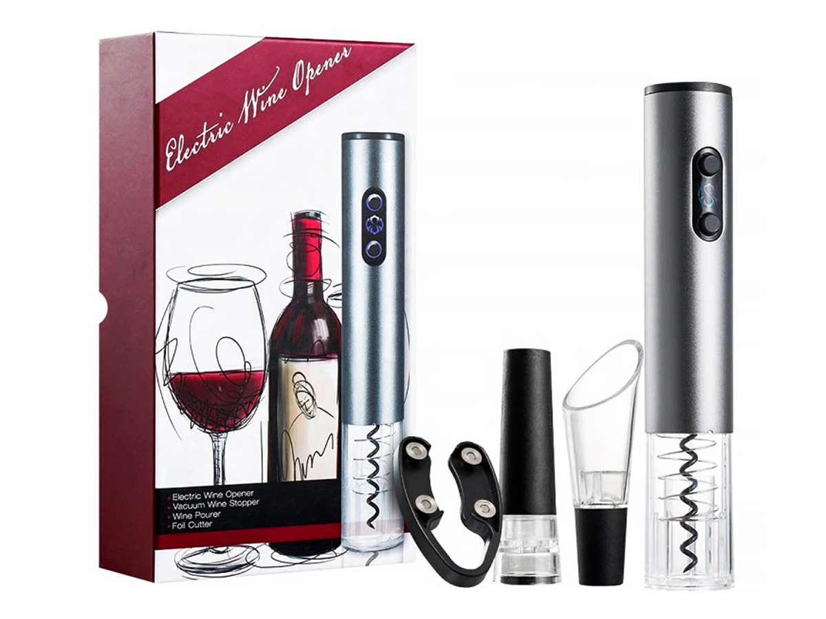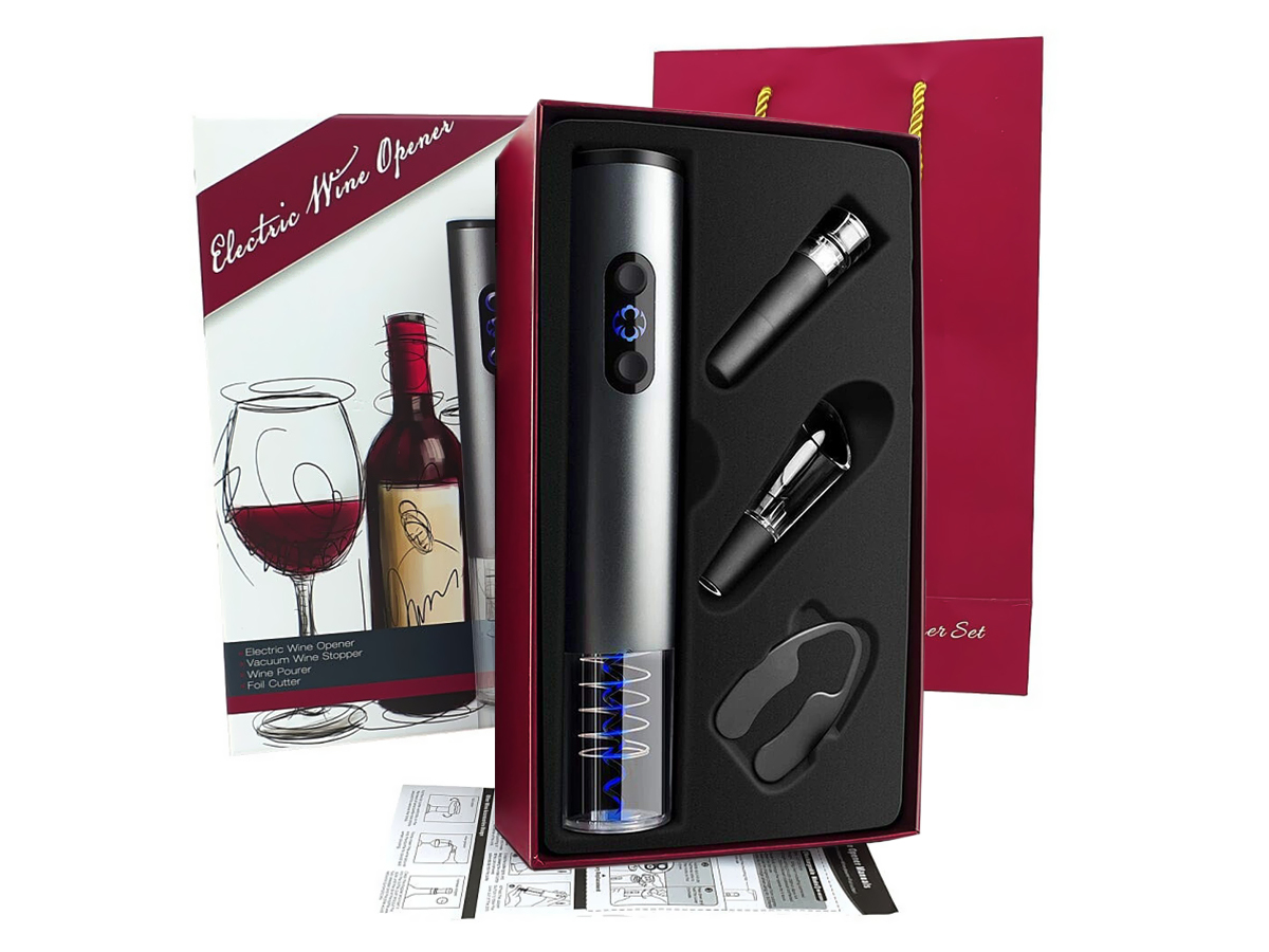 Электрический штопор TRUNKOIL Подарочный набор для вина с электрическим штопором, черно-серый