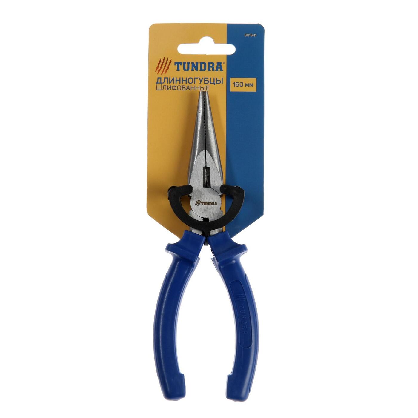 Длинногубцы TUNDRA, 160 мм, шлифованные, пластиковые рукоятки