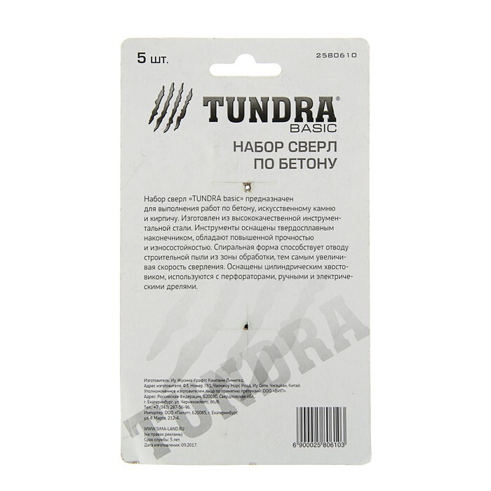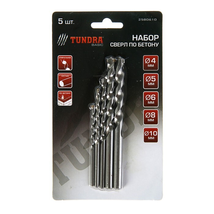 Набор сверл по бетону TUNDRA, цилиндрический хвостовик, 4-5-6-8-10 мм, 5 шт.