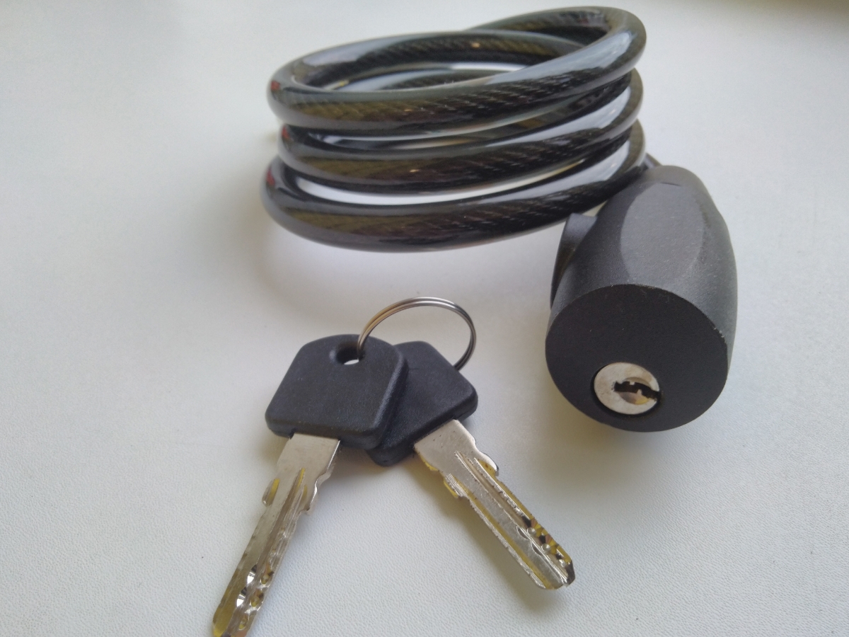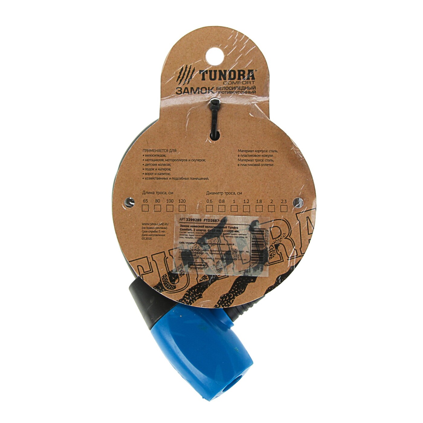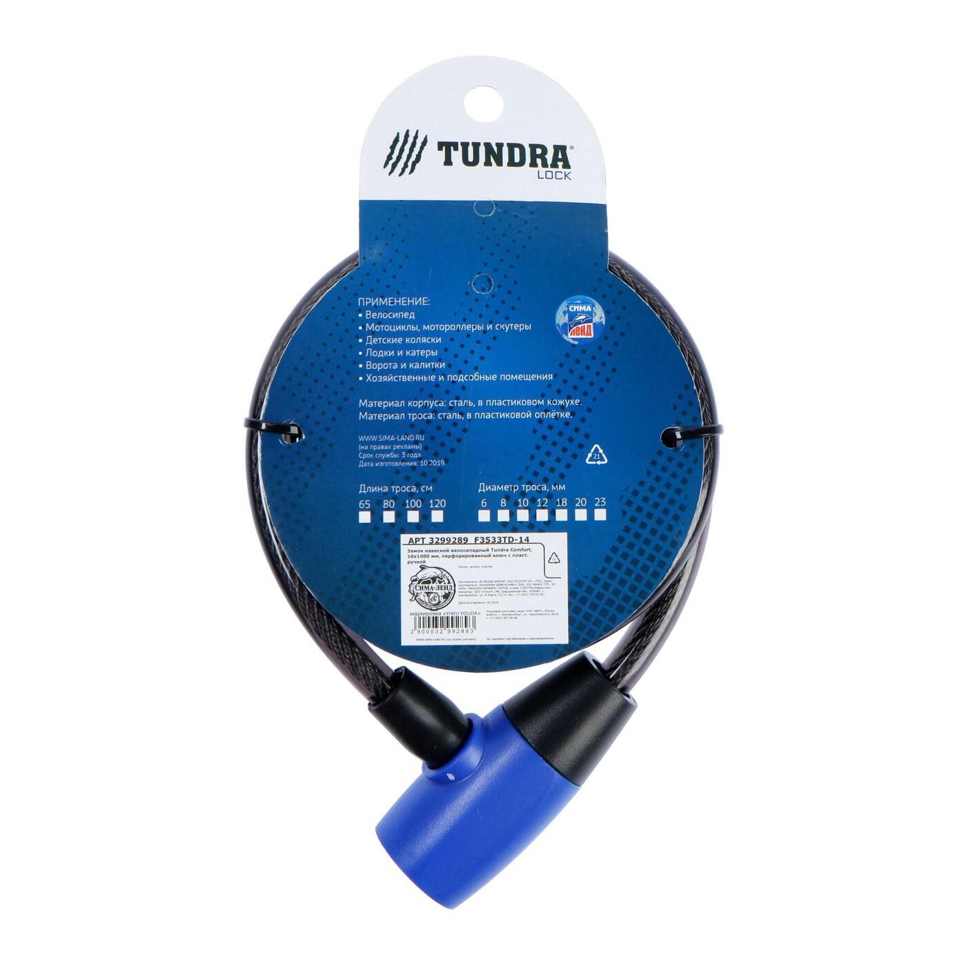 Замок навесной велосипедный TUNDRA, 10*1000 мм, перфорированный ключ с пластиковой ручкой