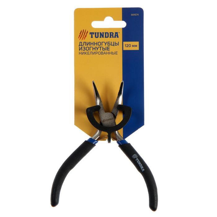 Длинногубцы изогнутые TUNDRA mini, никелированные, обрезиненные рукоятки, 120 мм