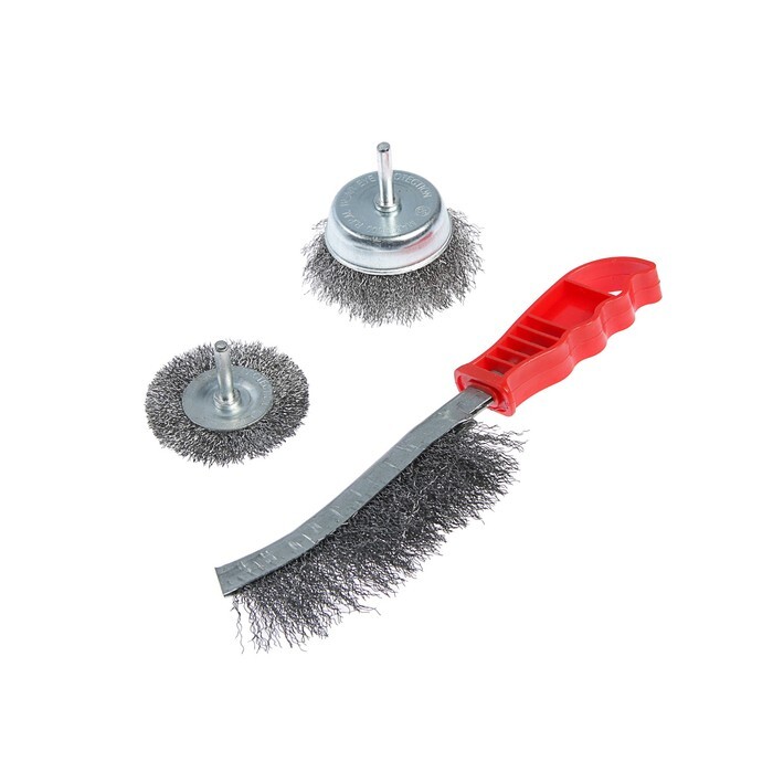 Набор щеток металлических для дрели TUNDRA, плоская 65, чашка 50 мм + щетка однорядная