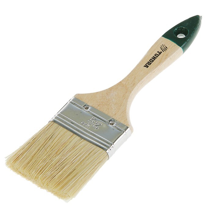 Кисть плоская TUNDRA, натуральная щетина, деревянная ручка, 2.5", 63 мм