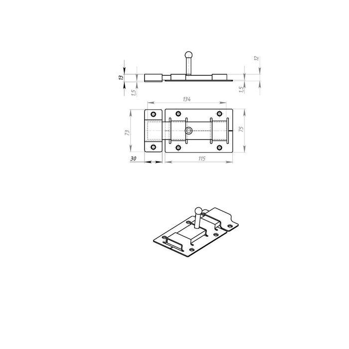 Задвижка дверная TUNDRA, ЗД-02, без покрытия, 1 шт.