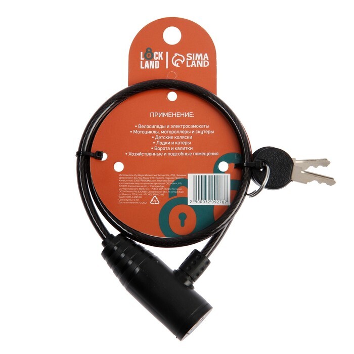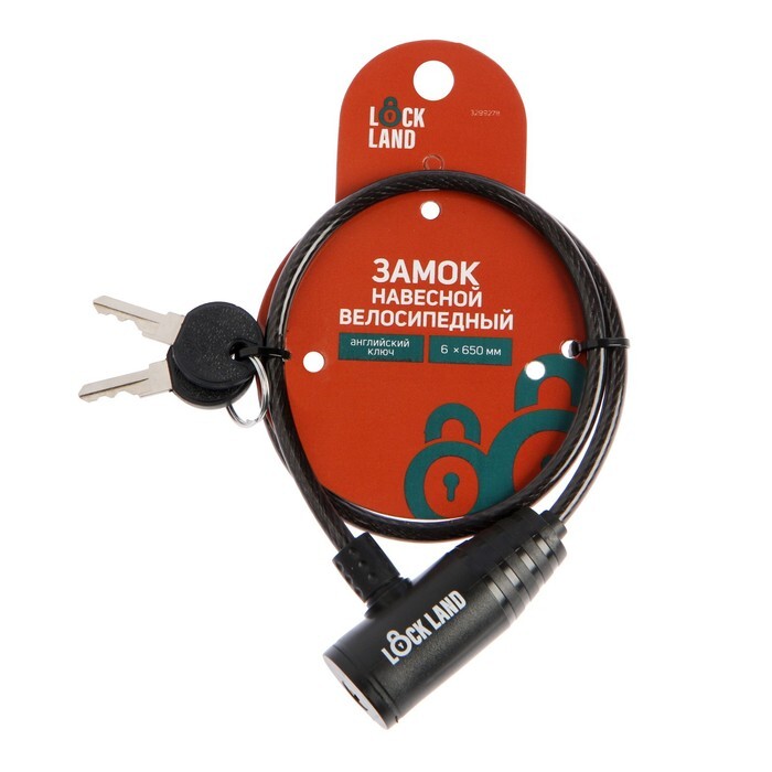 Замок навесной велосипедный ТУНДРА, 6 x 650 мм, английский ключ с пластиковой ручкой